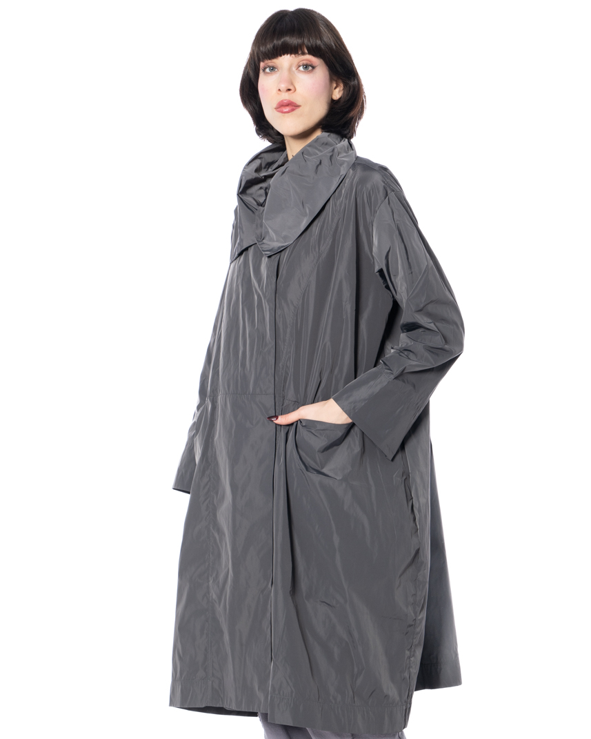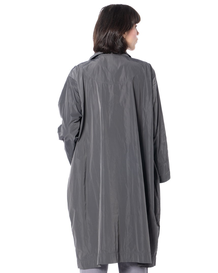 Der Trenchcoat MOIRA von IGOR verbindet Funktionalität mit raffiniertem Design in einer klaren, architektonischen Silhouette. Sein Oversize-Schnitt sorgt für eine lockere und dennoch elegante Passform und verkörpert die für das Label charakteristische mühelose Raffinesse. Ein auffälliger breiter Kragen verleiht ihm ein skulpturales Element, ohne die minimalistische Ästhetik zu beeinträchtigen.