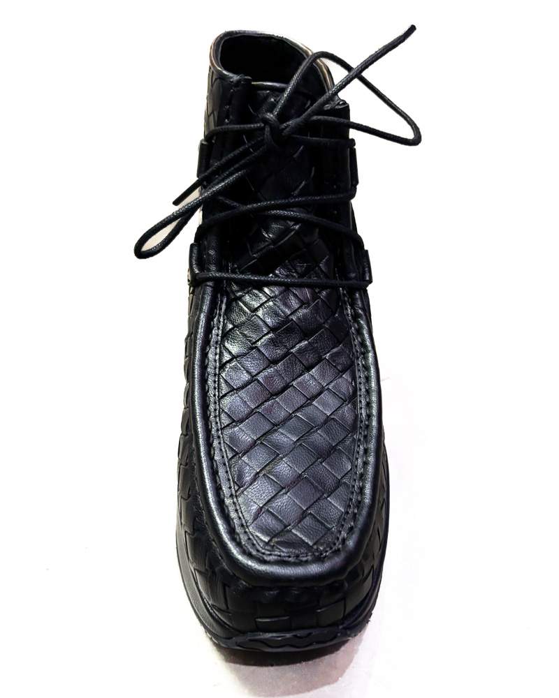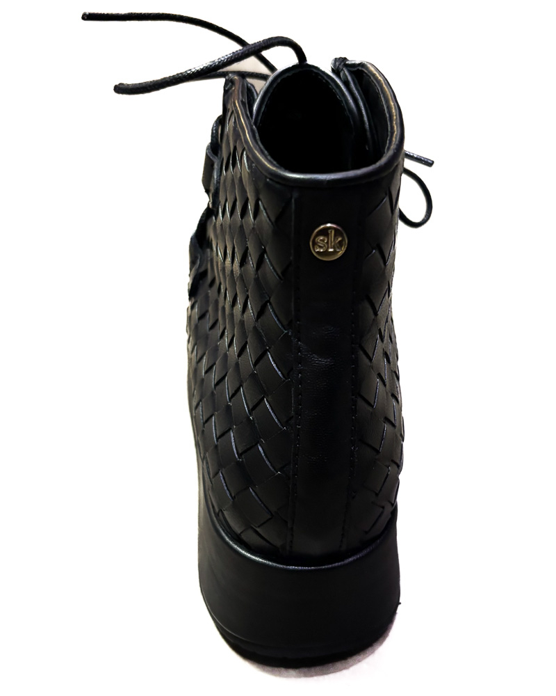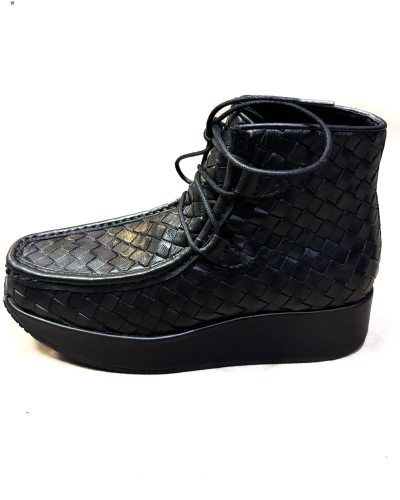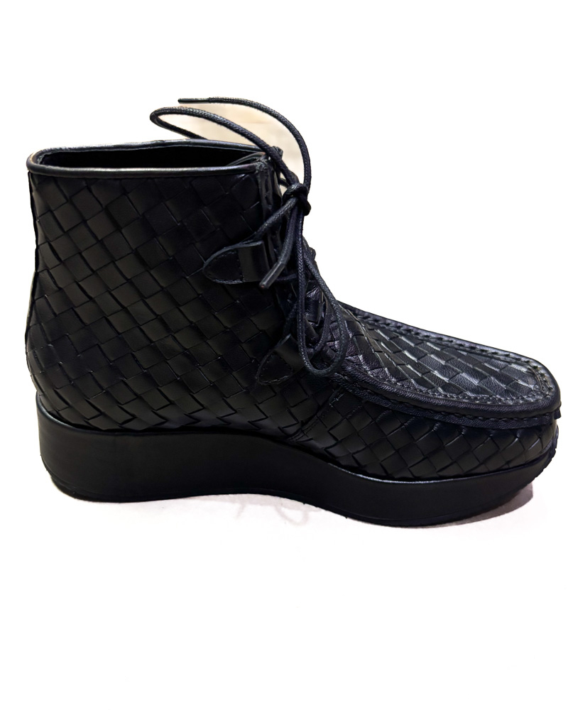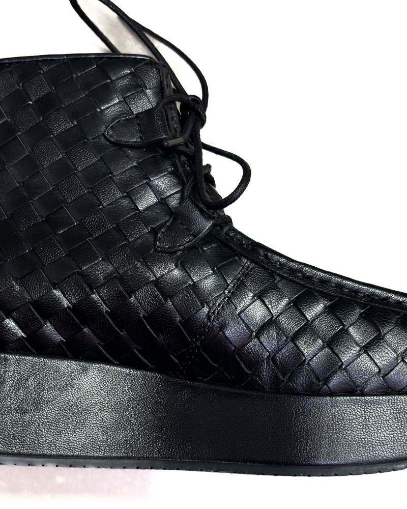 Geflochtenes Leder und moderne Linien: Die Plateaustiefelette von stephane kélian