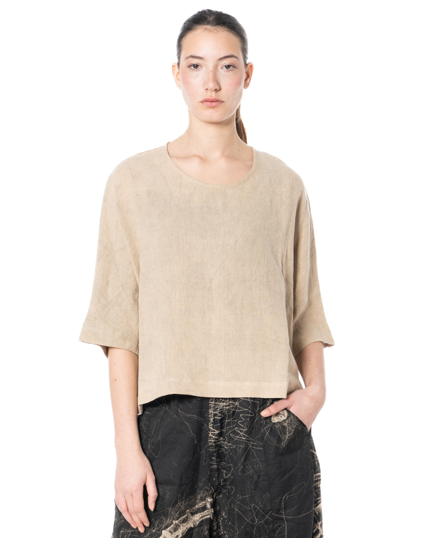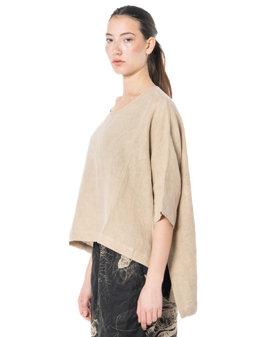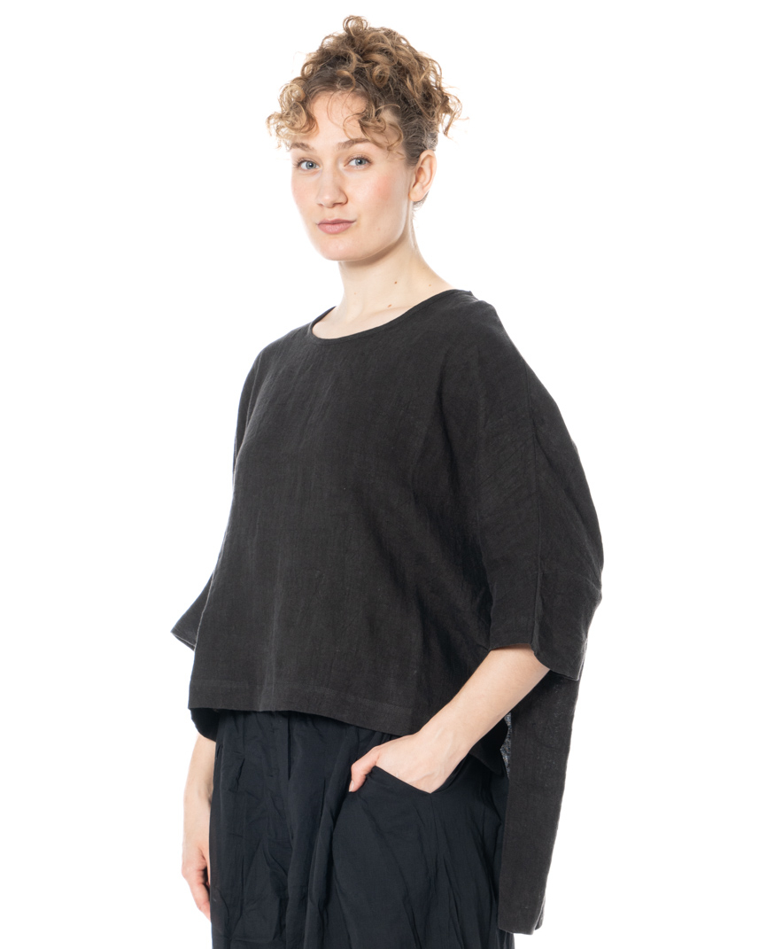 Die Leinentunika des Designerlabels studiob3 überzeugt durch ihr klares, funktionales Design und ihre hochwertige Verarbeitung. Gefertigt aus 100 % gewebtem Leinen bietet dieses Modell eine atmungsaktive und angenehme Textur, die sich besonders an warmen Tagen bewährt. Der lockere Schnitt sorgt für Bewegungsfreiheit und eine entspannte Silhouette, während der Rundhalsausschnitt dem Kleidungsstück eine dezente, moderne Note verleiht. Ein charakteristisches Detail ist der asymmetrische Saum: Die Tunika ist hinten etwas länger geschnitten als vorne, was für eine interessante Linienführung sorgt und das Gesamtbild auflockert. Das Label Studiob3 setzt bei dieser Tunika auf natürliche Materialien und eine Verarbeitung, die Langlebigkeit und Komfort vereint. Die Tunika eignet sich ideal für die Frühjahr-/Sommer-Saison und lässt sich vielseitig kombinieren – ob zu schmalen Hosen oder als luftiges Einzelstück an heißen Tagen.