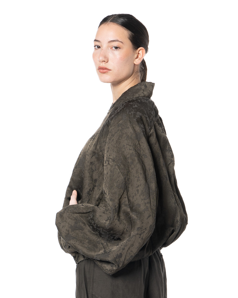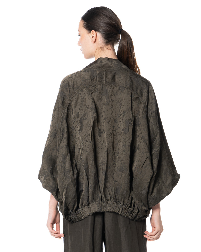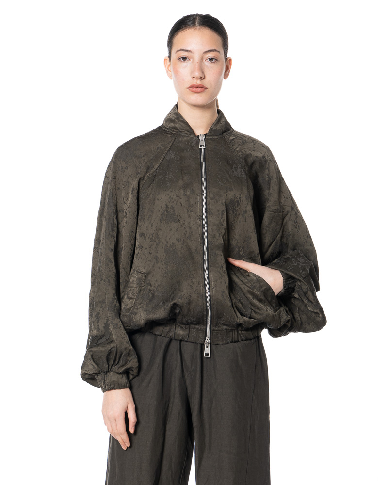 A silhouette miracle: How wide sleeves are redefining the classic bomber jacket! This jacquard bomber jacket is crafted from a lightweight viscose–linen–cotton blend, offering a refined texture with a soft, breathable feel. The relaxed bomber silhouette is balanced by subtle structure, creating an effortless yet considered shape. Designed to layer easily, the jacket combines comfort and elegance while maintaining a minimalist aesthetic. A versatile outerwear piece that transitions seamlessly between everyday wear and more elevated styling, reflecting Andrea Ya’aqov’s understated design language.