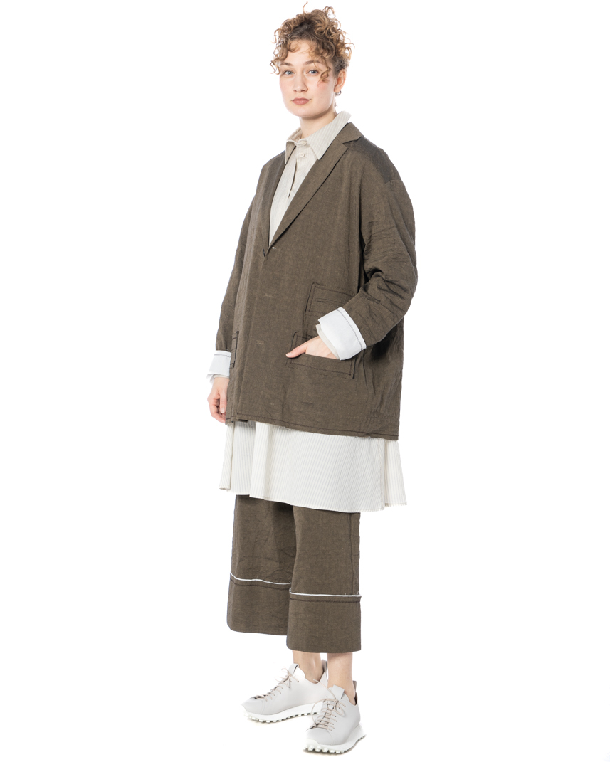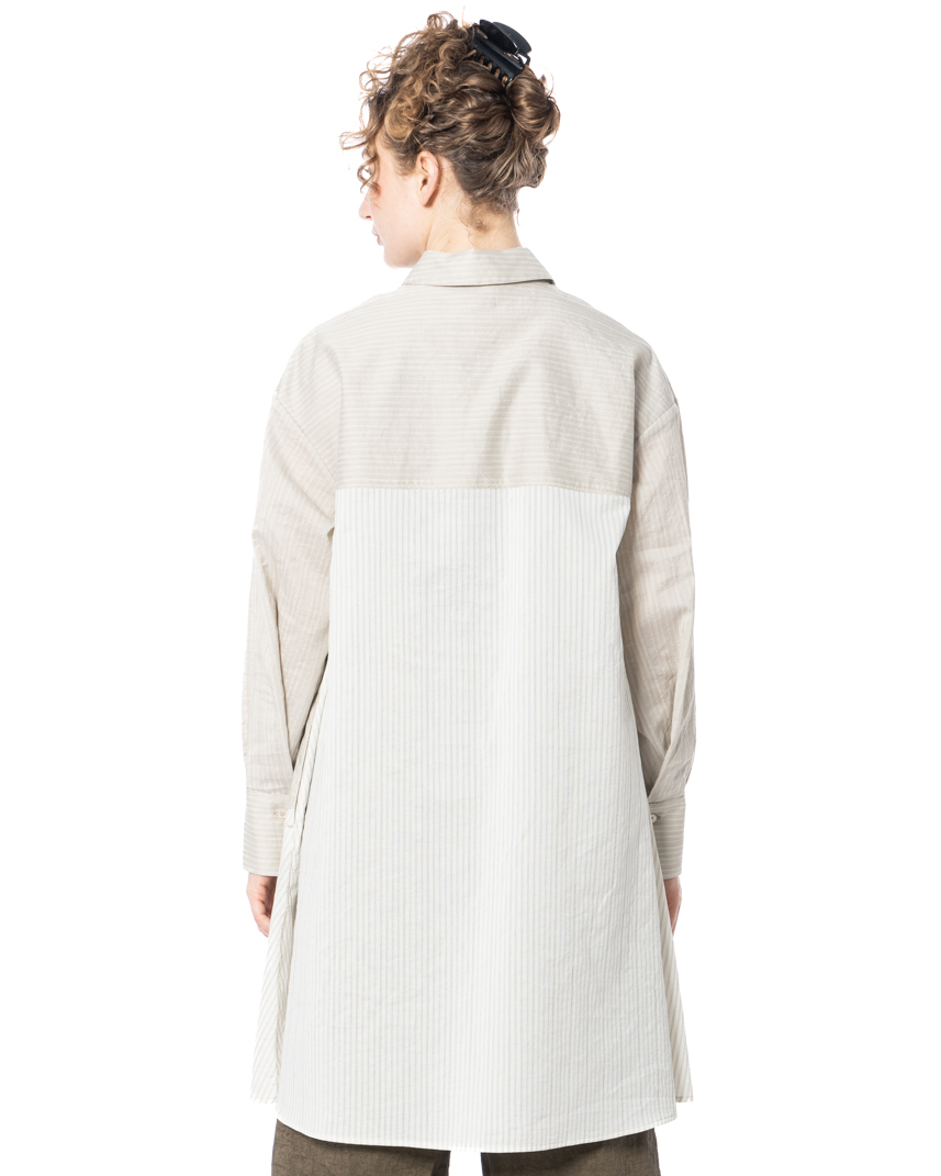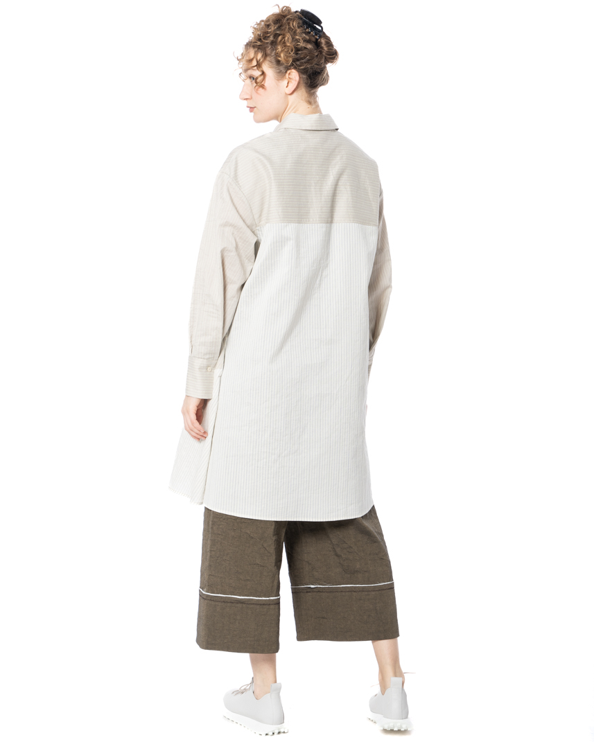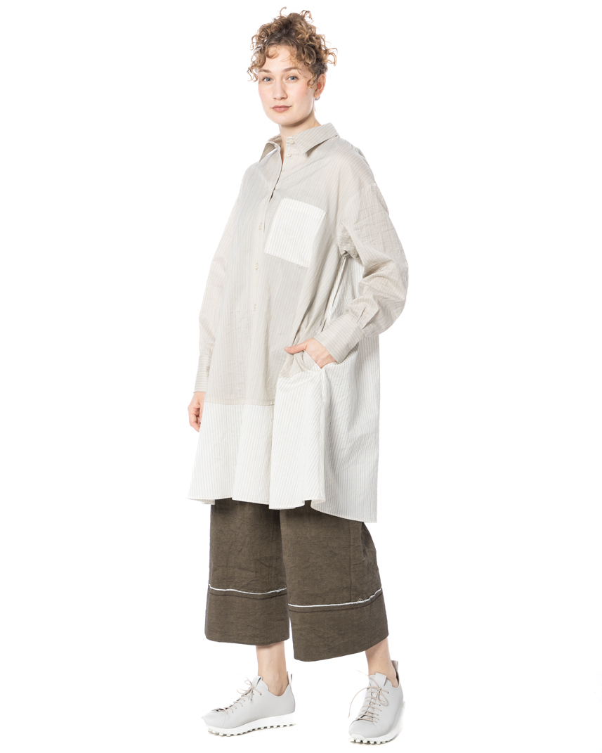 What would a warm summer day be without a dress that moves gracefully with every breeze? This sophisticated shirt dress by annette görtz, made from a fine cotton-silk blend, promises airy comfort without compromising style. Its gently iridescent stripes in delicate natural tones lend the dress subtle elegance, and its flowing A-line cut and slightly elongated back ensure a modern, casual look. A large breast pocket adds a casual accent, and wide sleeves with cuffs create playful volume.
