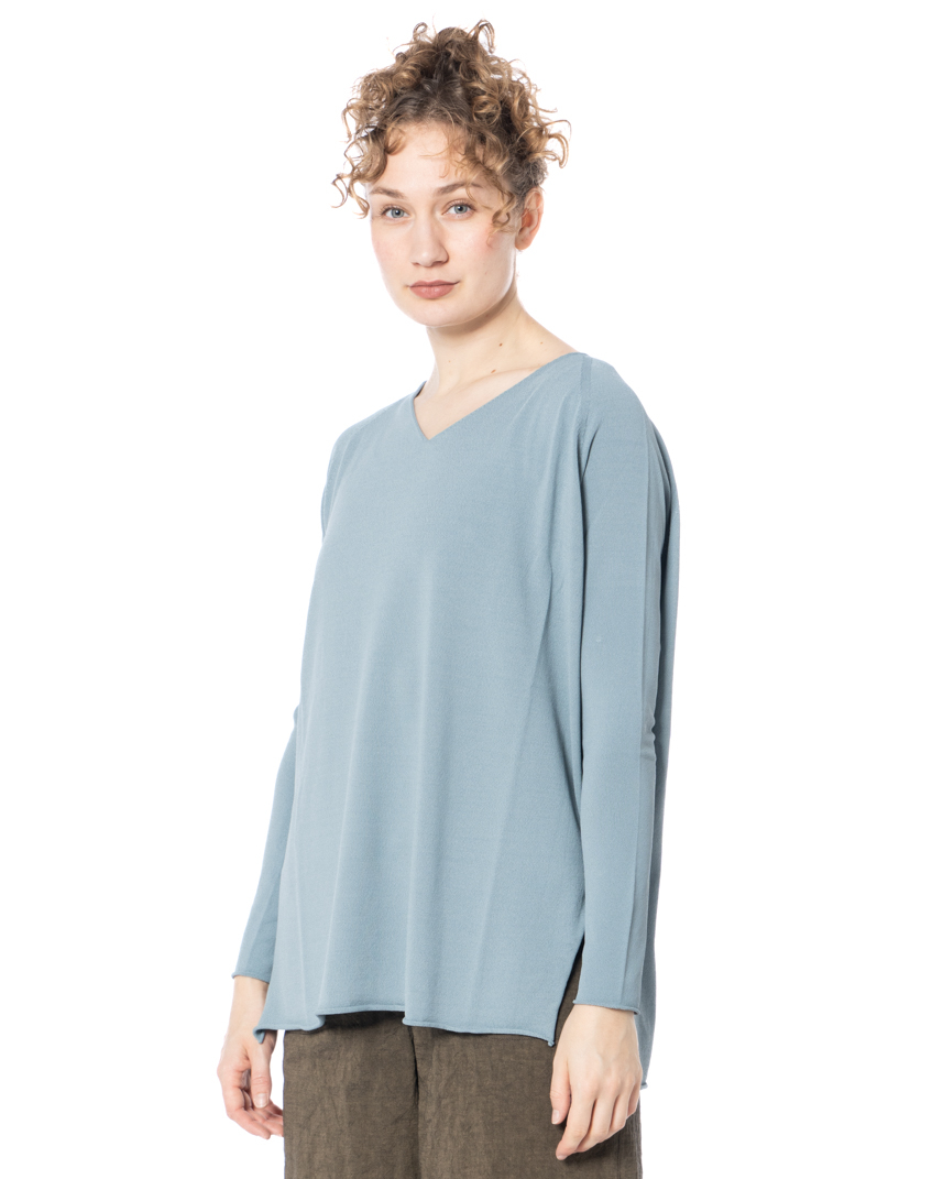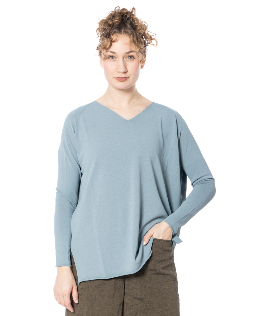 A touch of luxury worn like a second skin, the annette görtz sweater GRIM is the fashion statement for those who prefer a light, modern, and effortlessly stylish look. Its flowing drape skims the silhouette with subtle movement and its gently shaped V-neck elegantly elongates the décolletage, creating a clear, feminine line. The narrow, slightly dropped shoulders give it a relaxed, nonchalant attitude.