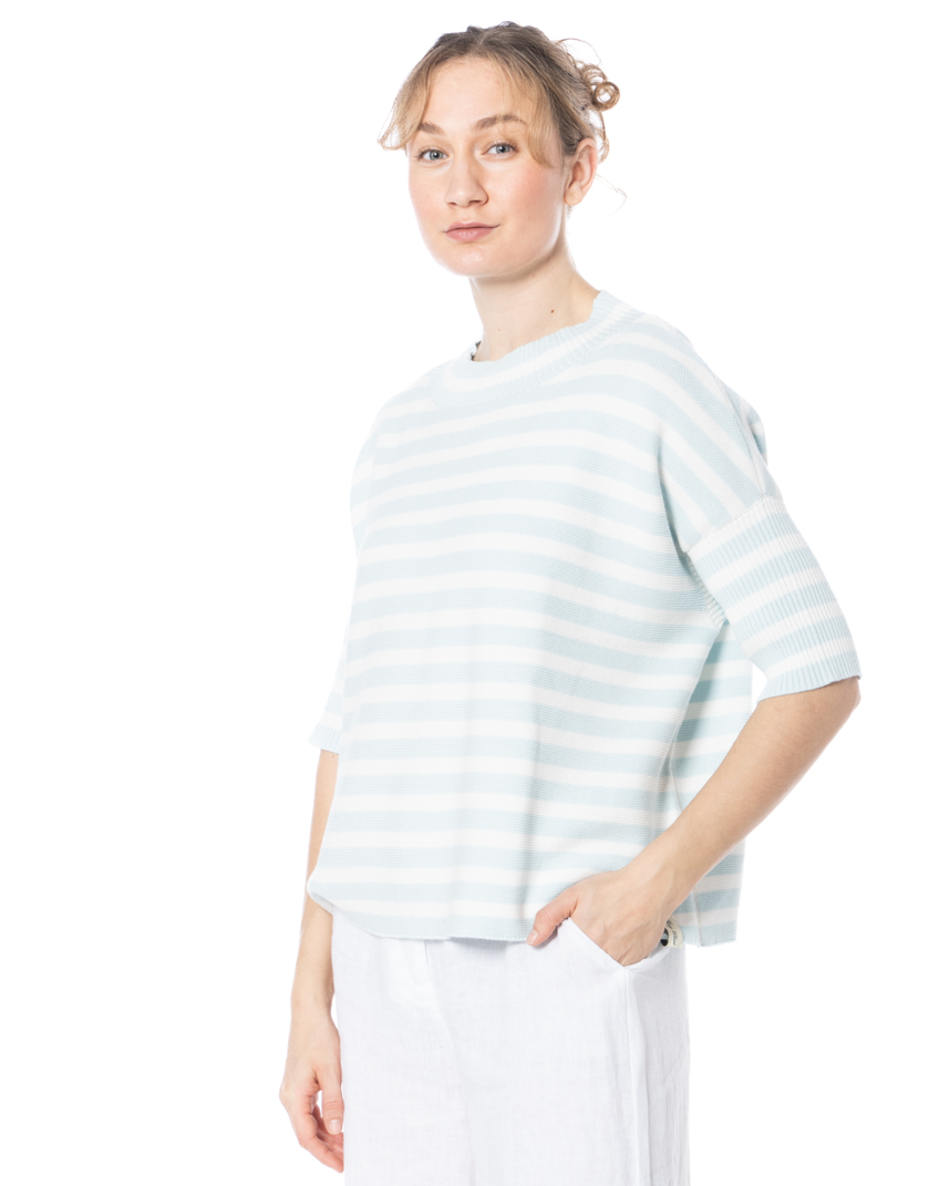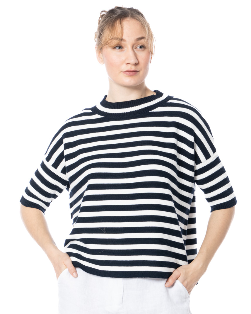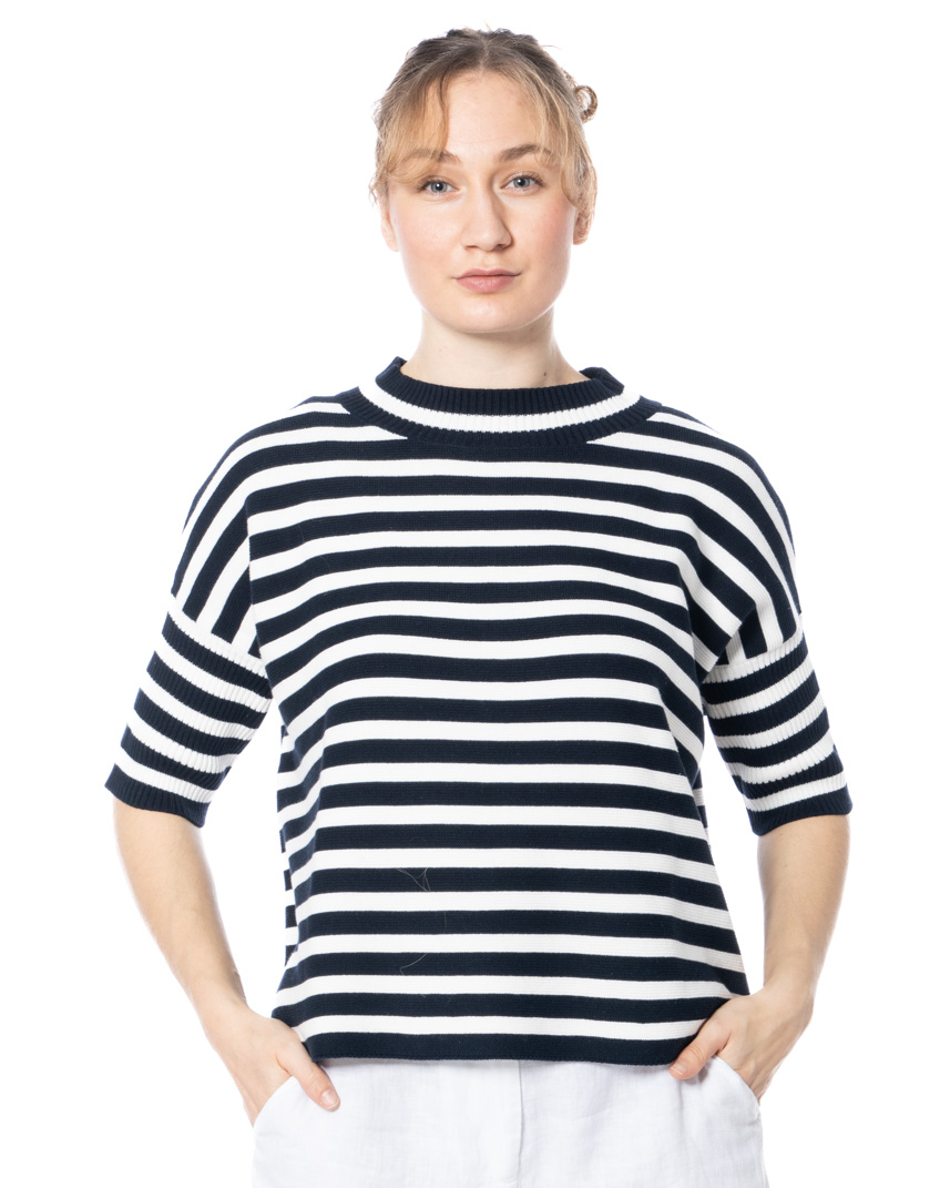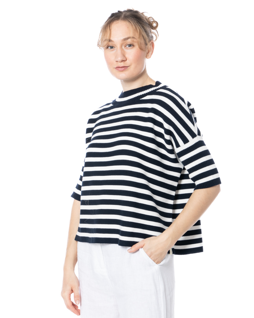 This striped shirt by HENRY CHRIST is made from carefully selected materials and is the product of thoughtful craftsmanship. Made from 100% cotton, it has a soft, breathable feel that is smooth against the skin, offering effortless comfort. The fine knit and classic striped pattern give this knit shirt a modern feel. The relaxed cut and subtle boxy shape allow for generous movement, making this piece extremely versatile. Dropped shoulders and shortened sleeves enhance the laid-back aesthetic, while a ribbed crew neck provides a polished finish. Side vents provide extra comfort and support a lightweight silhouette. Lightweight and summery, this style is an excellent choice for spring and summer. It is dimensionally stable and easy to care for, simplifying everyday wear.