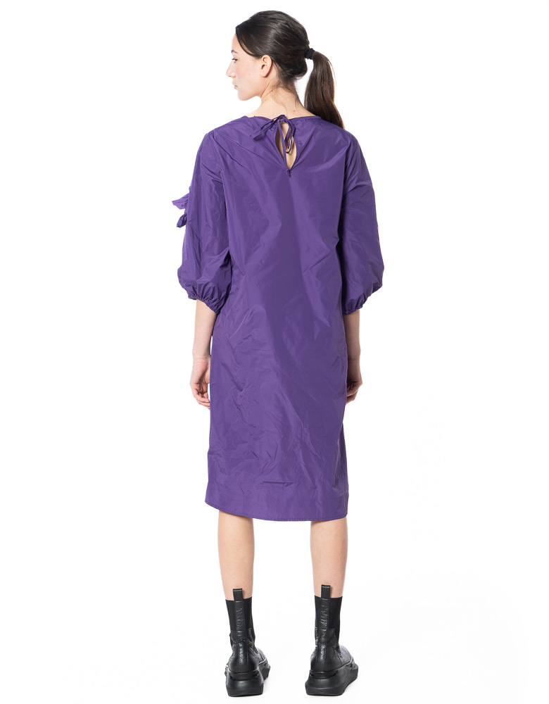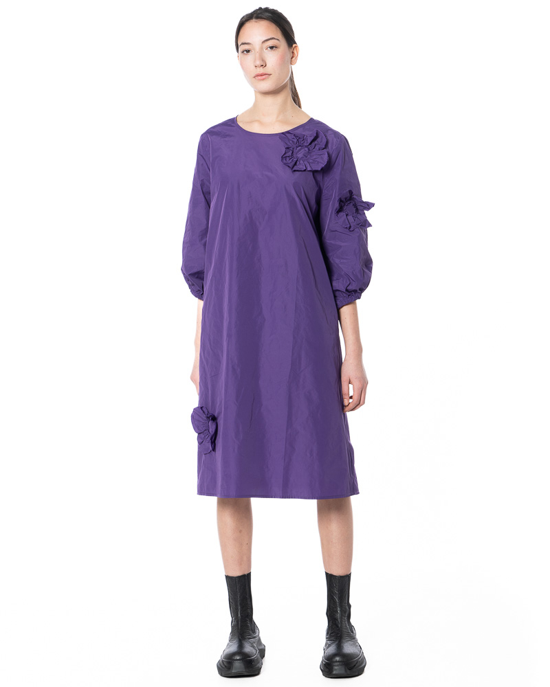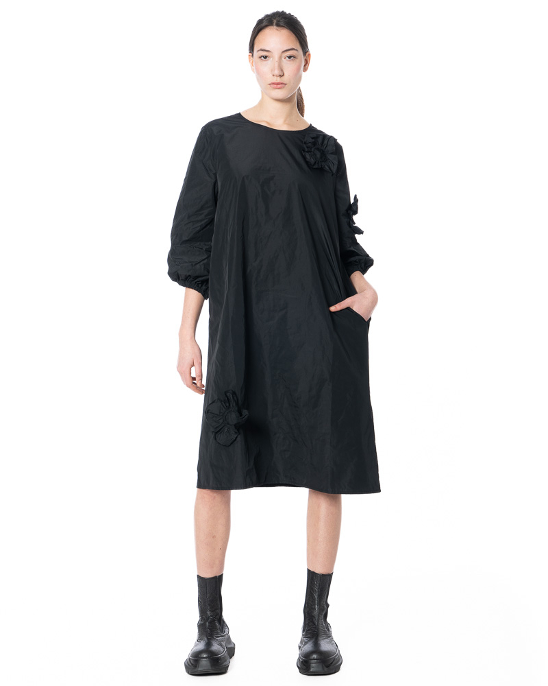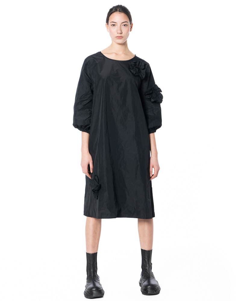 This sophisticated dress by HINDAHL & SKUDELNY is perfect for the spring/summer season. Crafted from premium taffeta, its classic, feminine cut creates an understated silhouette. Eye-catching floral applications provide a distinctive touch and give the dress an individual character. The long puff sleeves end in a gathered finish to create a distinctive shape. The round neckline features a back slit that is secured with a tie at the neck, providing a functional touch that also makes dressing easier. The dress's refined workmanship underscores its quality and ensures a polished overall impression.