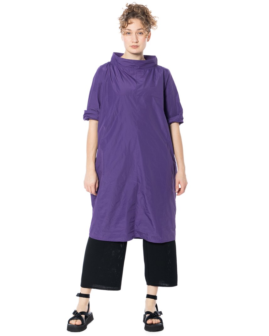Discover this elegant taffeta dress with collar by the designer label HINDAHL & SKUDELNY. The simple, straight silhouette creates a modern look, while the high stand-up collar adds a striking contour to the design. The cropped sleeves enhance the minimalist aesthetic and provide freedom of movement on warmer days. The two-piece cut with a dividing seam at chest height adds a subtle accent, highlighting the label's precise workmanship. Practical side pockets increase the dress's functionality without detracting from its overall purist look. The light, breezy taffeta material makes this dress the perfect choice for spring and summer.
