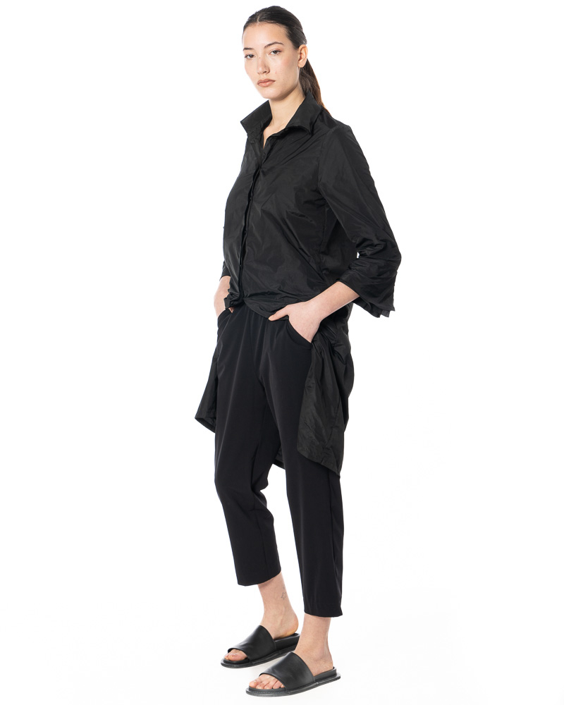 The LEGER PANTS by designer label KATHARINA HOVMAN impresses with an ultra-light feel, especially designed for the spring/summer season. Featherweight fabric keeps you comfortable on warm days. Elastic waistband allows for a flexible fit and adapts to your individual silhouette for freedom of movement. Side vents at the hem are not only a visual detail, they also increase airflow and provide added comfort when walking. Convenient side pockets provide space for everyday essentials without adding bulk or compromising the clean lines of the pants. The LEGER PANTS feature a subtle yet functional design that pairs effortlessly with a modern sensibility. These pants are ideal for the discerning wearer who values lightness, functionality and thoughtful design. The LEGER PANTS by KATHARINA HOVMAN are a reliable choice for warm days.