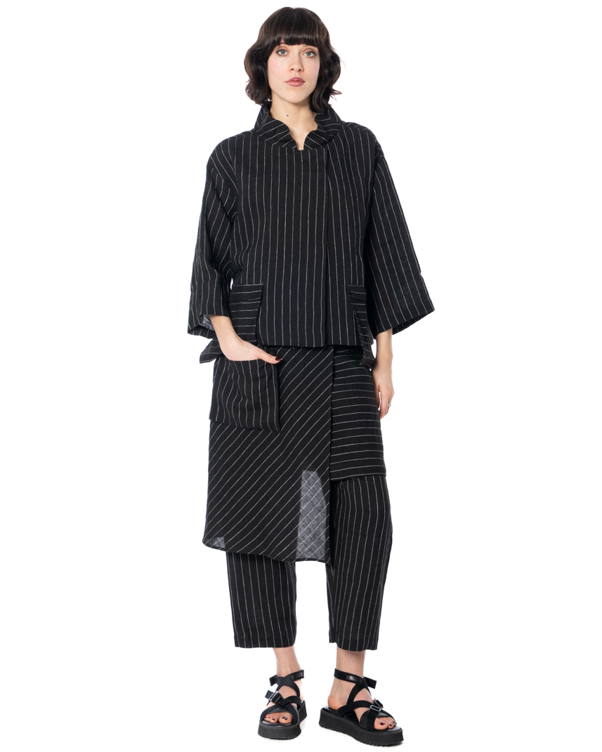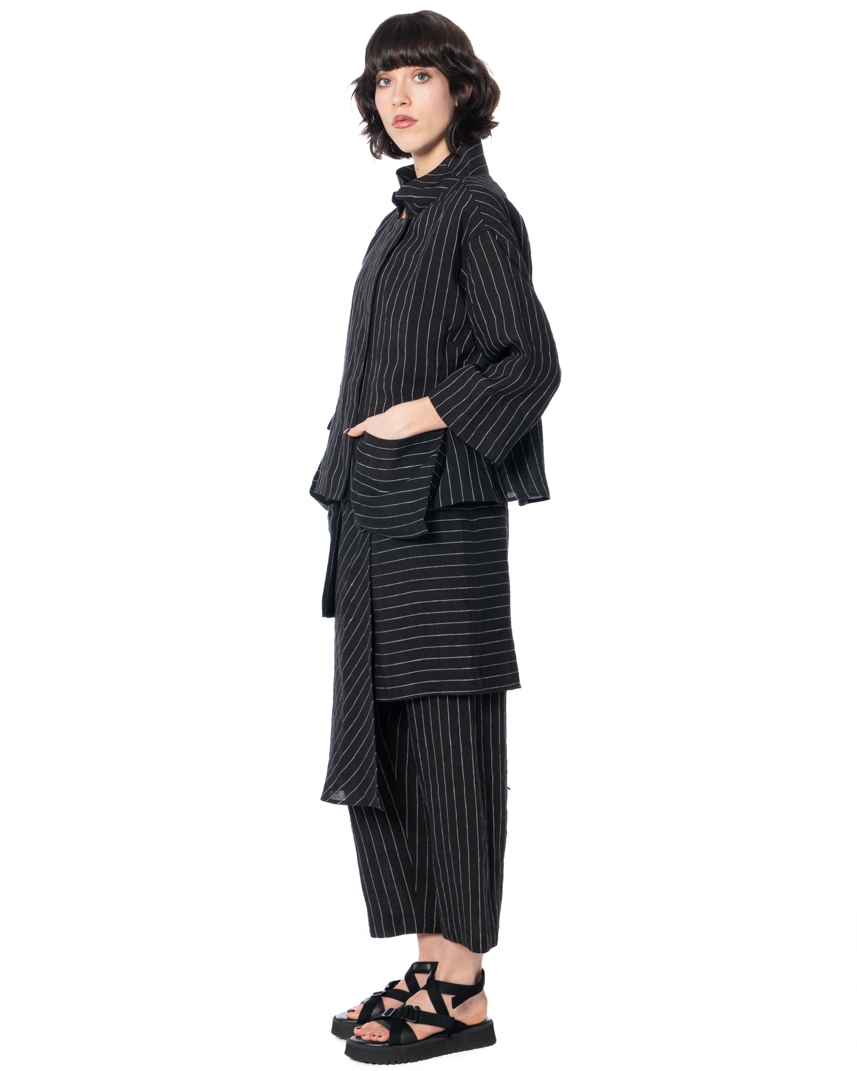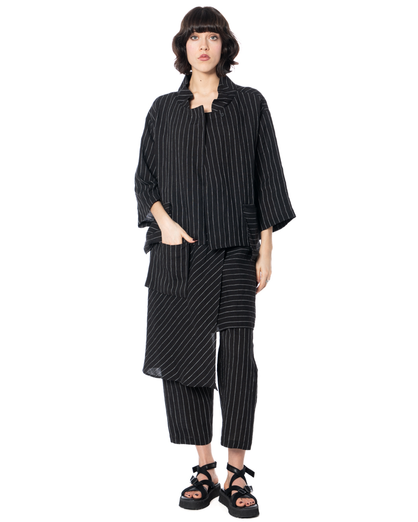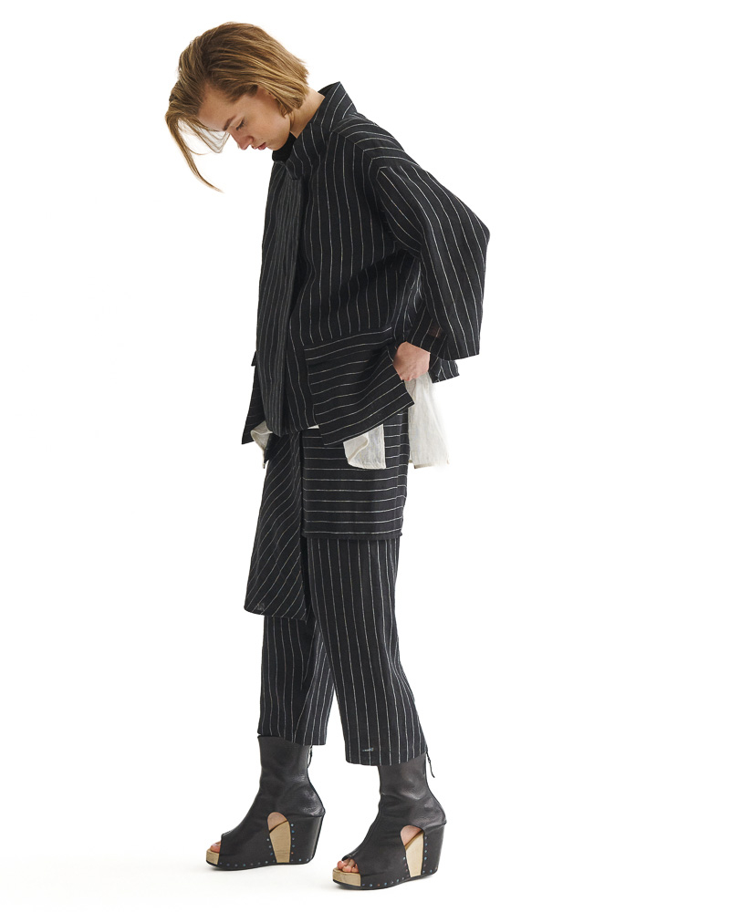 Japanese-inspired Linen Pant with experimental Design by KEDZIOREK These linen pants by the designer label KEDZIOREK feature a striking pinstripe mot...