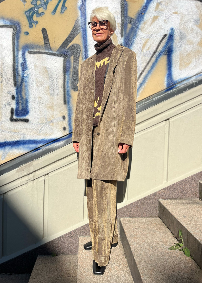 Corduroy makes a brilliant comeback in the Fall/Winter 2025/26 season – yet annette görtz shows how this traditional fabric can be reimagined. The KELLY pants and the KEO coat are not heavy classics, but interpretations with a silky sheen. Every step becomes a gesture, every glance at the surface reveals movement, texture and lived modernity. This ensemble slips effortlessly between eras: a nod to retro silhouettes, yet carried by a clear, timeless purism that speaks the language of today.