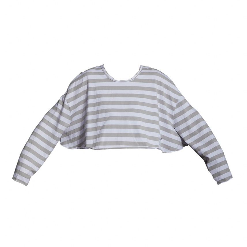 This versatile sweatshirt is easy to style and will add a new dimension to your wardrobe. It features a distinctive cut and signature stripe pattern.