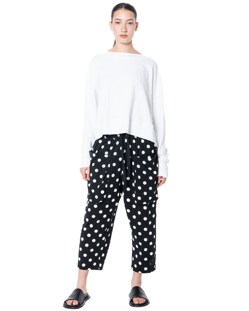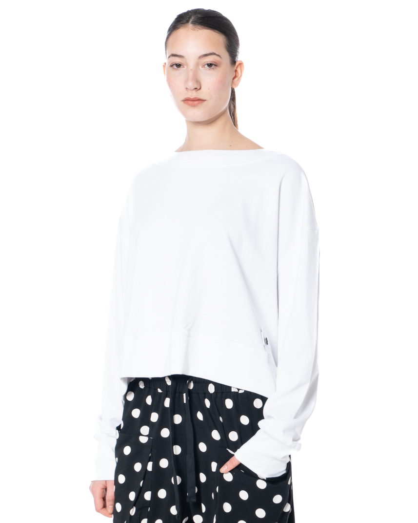 The cropped sweater SHORTY with vents by PLUSLAVIE PLÜ presents itself as a modern staple with clean lines and functional nuances. Made from soft cotton sweatshirt fabric, it has a refined feel and is perfect for the spring/summer season. A subtle crop creates a contemporary silhouette with versatile styling potential, while side vents at the hem add ease of movement and a laid-back appeal. The classic crew neck is meticulously finished, adding to the effortless character of the piece. PLUSLAVIE PLÜ's iconic plus patch adds a subtle accent to the front and hints at the design's origins. Rendered in black and white, it unlocks numerous styling options and blends seamlessly into a range of looks.