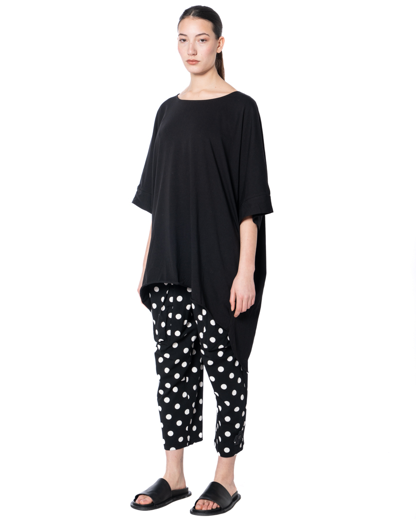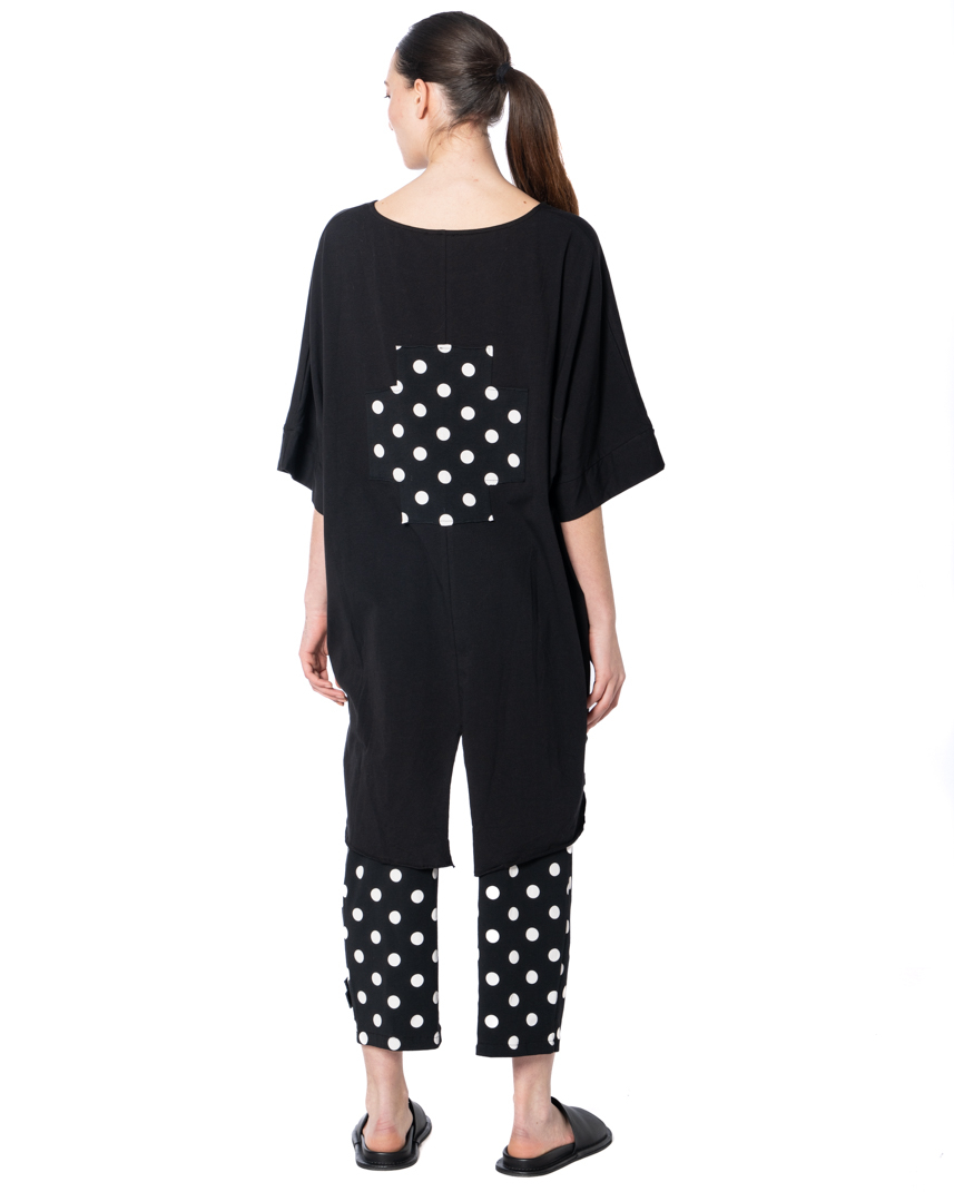 The PLUSLAVIE PLÜ, Shirt BIG T PLUS with pointy patch from the designer label PLUSLAVIE PLÜ comes as a generously cut one-size top with an exceptionally relaxed fit. Comfortable crew neck for effortless dressing and refined wear. Made from soft cotton jersey, the fabric feels smooth against the skin and is ideal for the spring/summer season. The deep black design is accented with a bold, applied XL-Plus patch with white dots on the back for a unique look. A center slit at the back hem adds freedom of movement and a relaxed look. Impeccable craftsmanship and thoughtful design make this piece a versatile addition to your wardrobe that can be effortlessly styled.