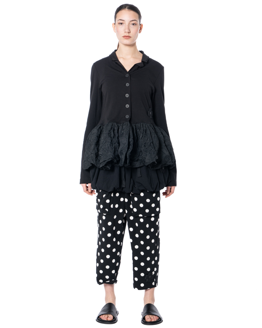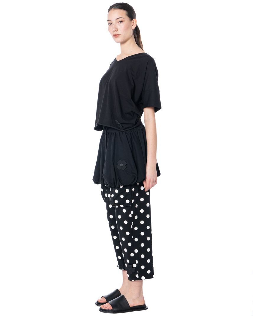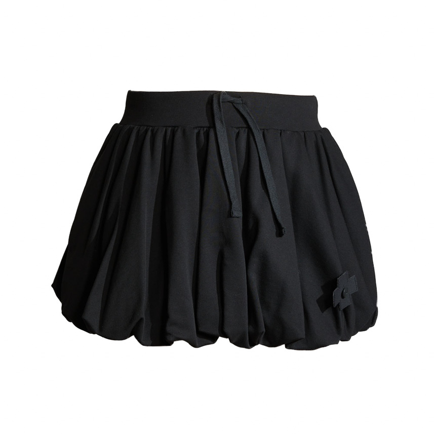 The short PLUSLAVIE PLÜ volant skirt SWEATSKIRT is a modern interpretation of the classic miniskirt. Made from soft cotton sweatshirt fabric, this piece offers a comfortable feel and impressive flexibility. Elastic waistband for a comfortable fit that contours to your silhouette. Rendered in timeless black, it styles effortlessly and works seamlessly with a range of outfits. A special feature of the SWEATSKIRT is that it can also be worn over pants for additional styling options. The skirt is available in sizes S, M, and L, and is great for spring/summer because the material feels light against the skin. Designed with durability and everyday practicality in mind.