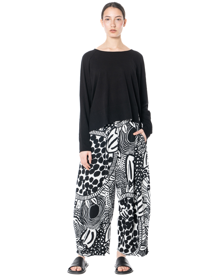 This cotton jumper by the RUNDHOLZ BLACK LABEL designer label has a clean, minimalist look. Its loose, boxy cut ensures a comfortable fit, making it particularly pleasant to wear in the warmer months. The classic round neckline and long sleeves emphasise the timeless design, and the soft, flowing cotton fabric feels natural against the skin. A small decorative motif on the hem adds a subtle accent, giving the jumper an individual touch. This versatile piece can be combined in many ways and is suitable for relaxed everyday looks and leisure activities. Thanks to its urban, timeless design, this cotton jumper is an ideal companion for spring and summer.