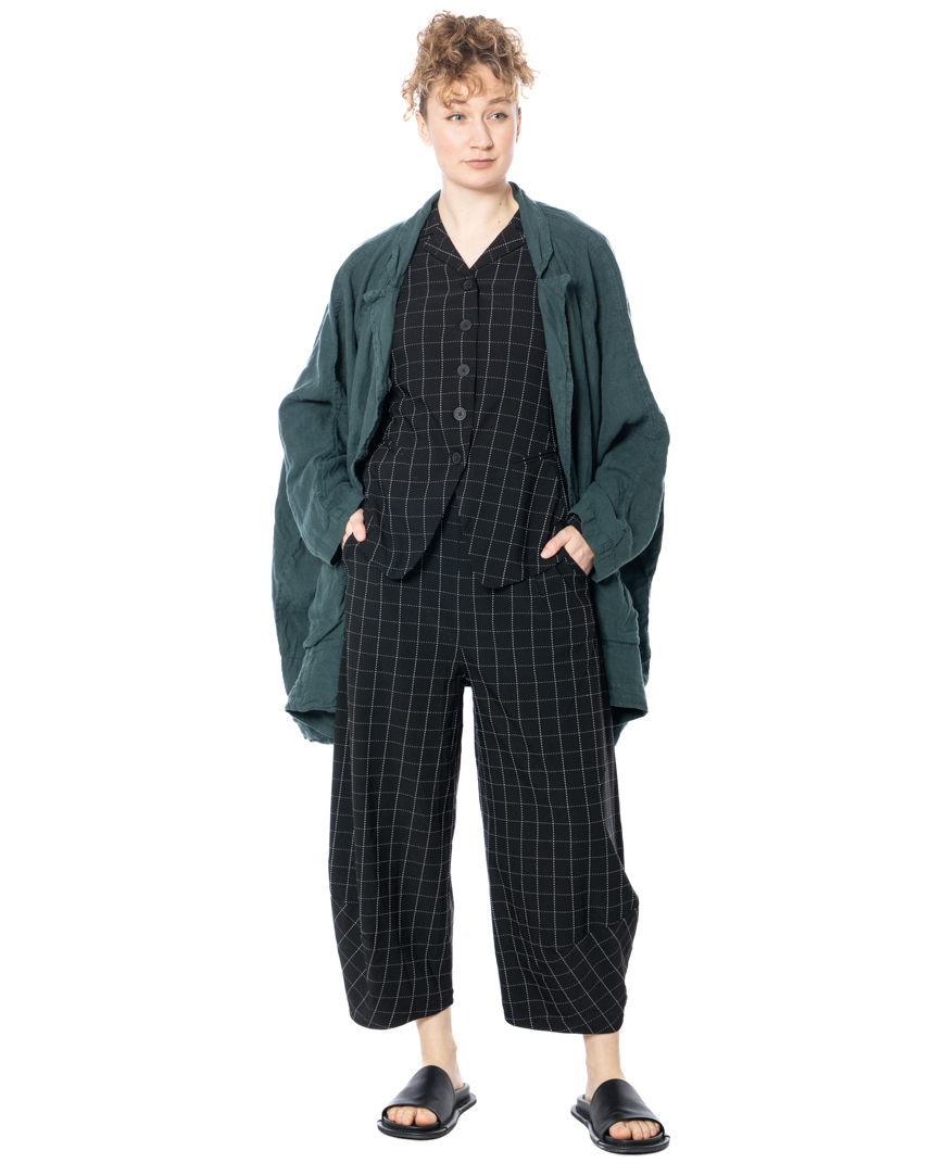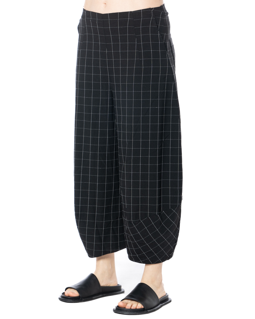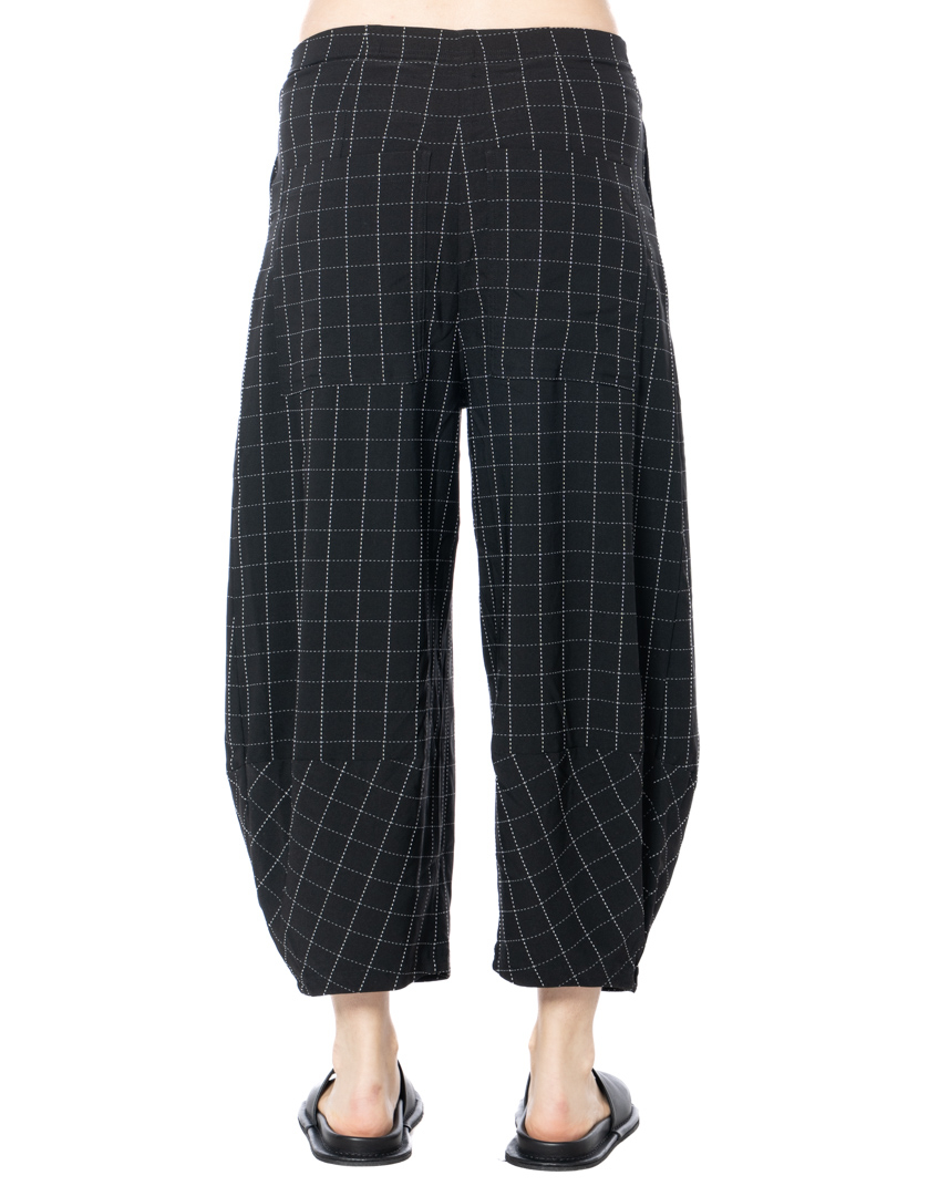 Defined by a voluminous, curved silhouette that creates a distinctive and sculptural leg shape! The balloon cut introduces controlled volume through the leg, while the flowing viscose blend allows the fabric to move softly with the body. The patterned surface adds graphic depth and emphasizes the architectural form of the design.