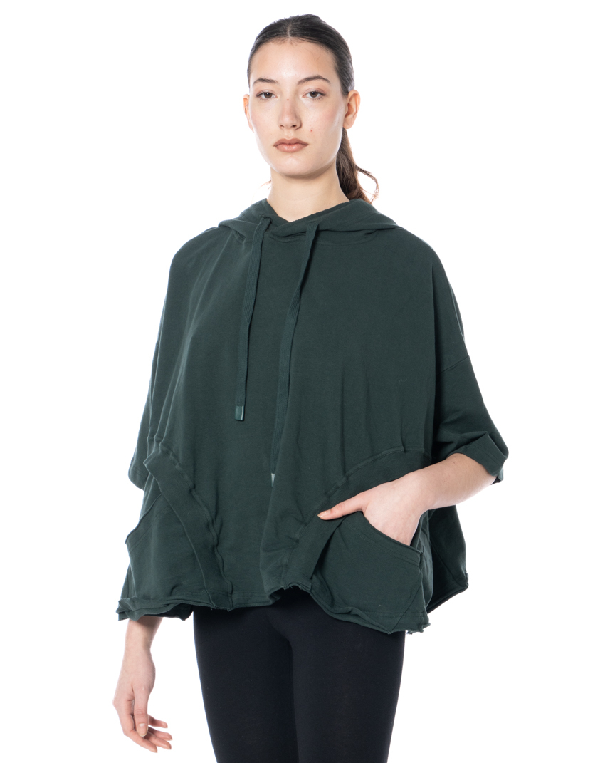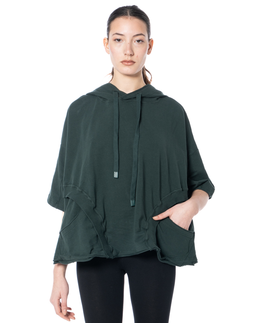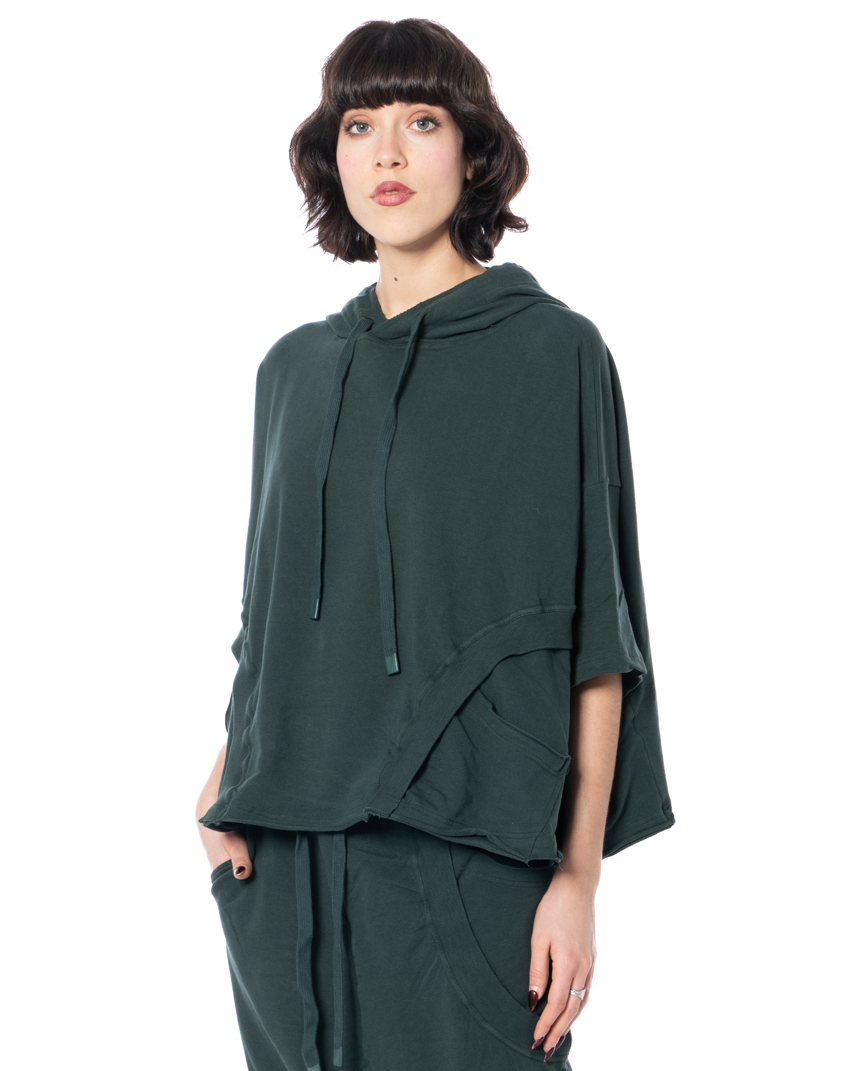 Form follows Fashion. Boxy in its construction and fluid in its oversized silhouette, this piece plays with proportions, layering and avant-garde nonchalance with effortless confidence. The French terry cotton stretch delivers the perfect balance between structure and softness. Raw-edged rolled hems create a deliberately unfinished aesthetic, while graphic seam lines and ribbed inserts add architectural depth to the design.