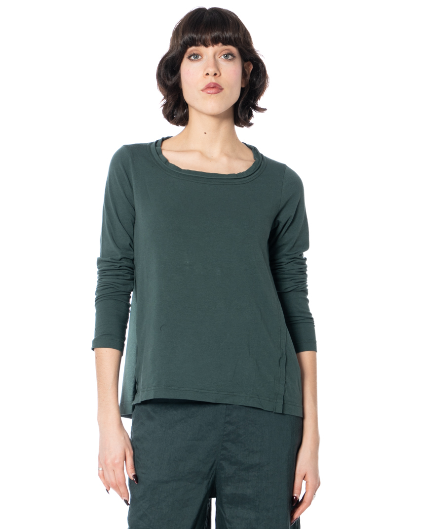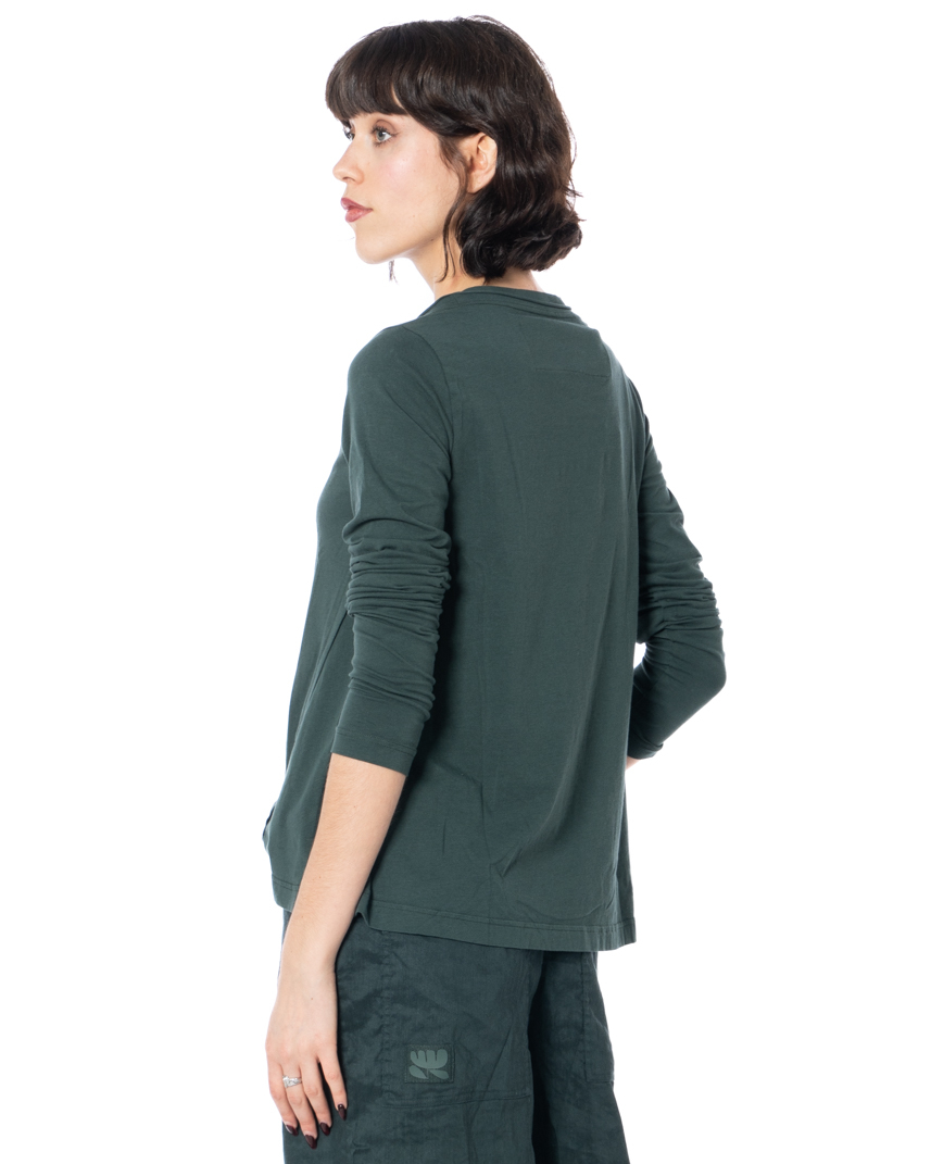 The RUNDHOLZ BLACK LABEL long-sleeved shirt is a versatile addition to your wardrobe for the warmer months. Its refined minimalism and thoughtful details make it a chic addition to any wardrobe.