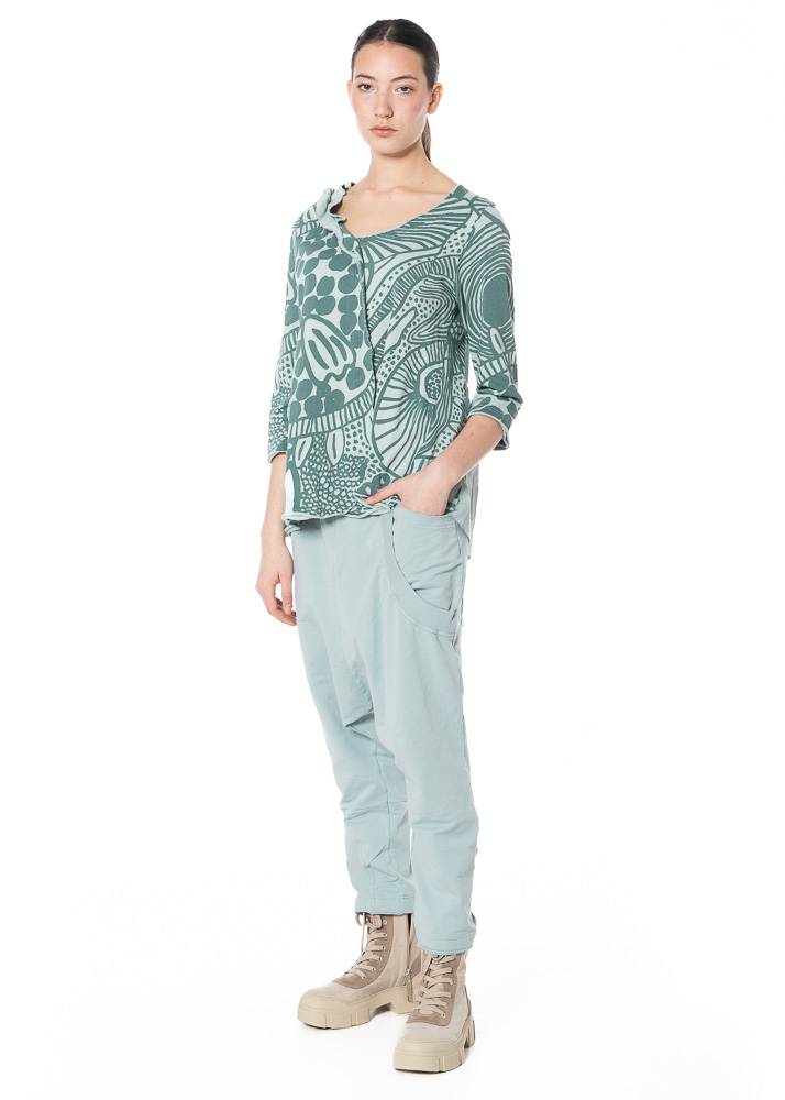 This cotton shirt with an all-over print from the designer label RUNDHOLZ BLACK LABEL features an abstract, continuous motif that adds a creative touch to any outfit. Made from soft, flowing cotton, this top has a sophisticated feel and is perfect for spring and summer. The slightly fitted, relaxed silhouette ensures comfort, while the scoop neckline and three-quarter-length sleeves keep the design functional and versatile. The subtly flared hem accentuates the modern silhouette, providing generous freedom of movement for everyday wear. The piece can be easily paired with tailored trousers or jeans, opening up myriad styling possibilities. The combination of premium craftsmanship and a timeless yet imaginative design makes this shirt a versatile addition to your wardrobe.