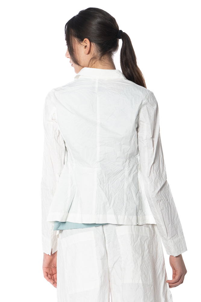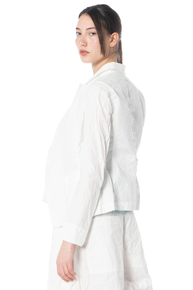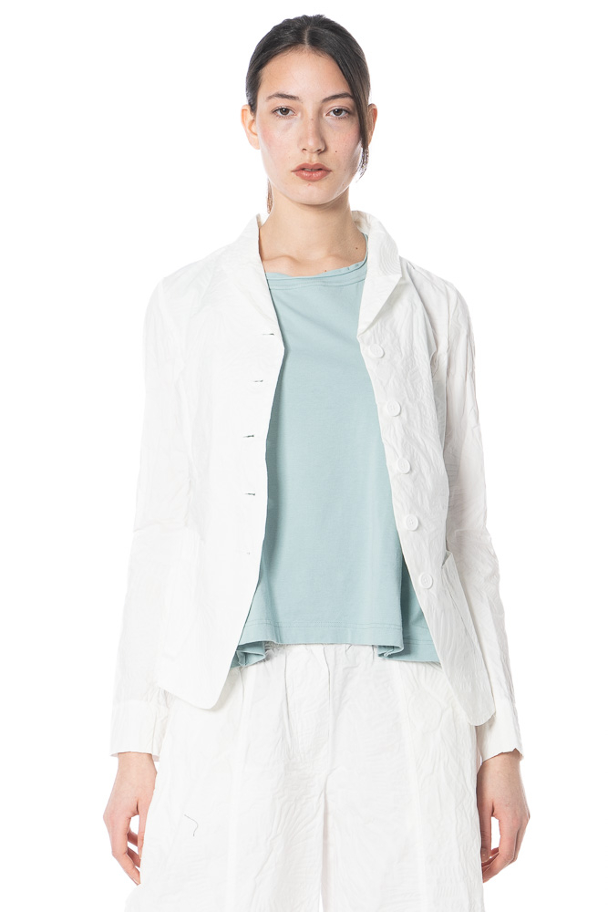 Designed for versatile styling, this jacket works well as part of a coordinated outfit or as a standalone piece. The pure cotton fabric enhances the natural feel and supports the clean, architectural aesthetic.