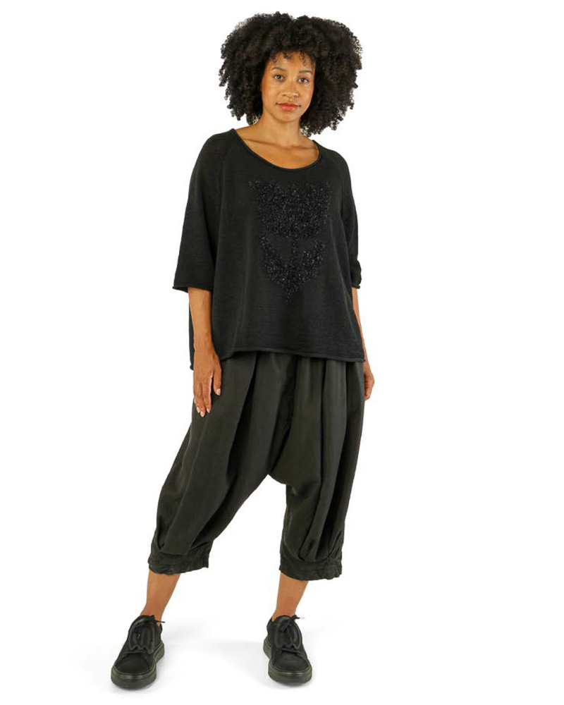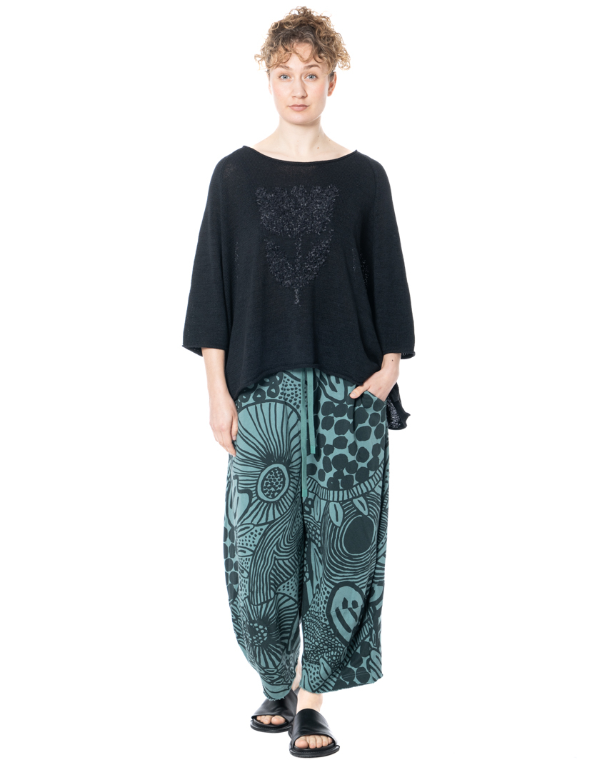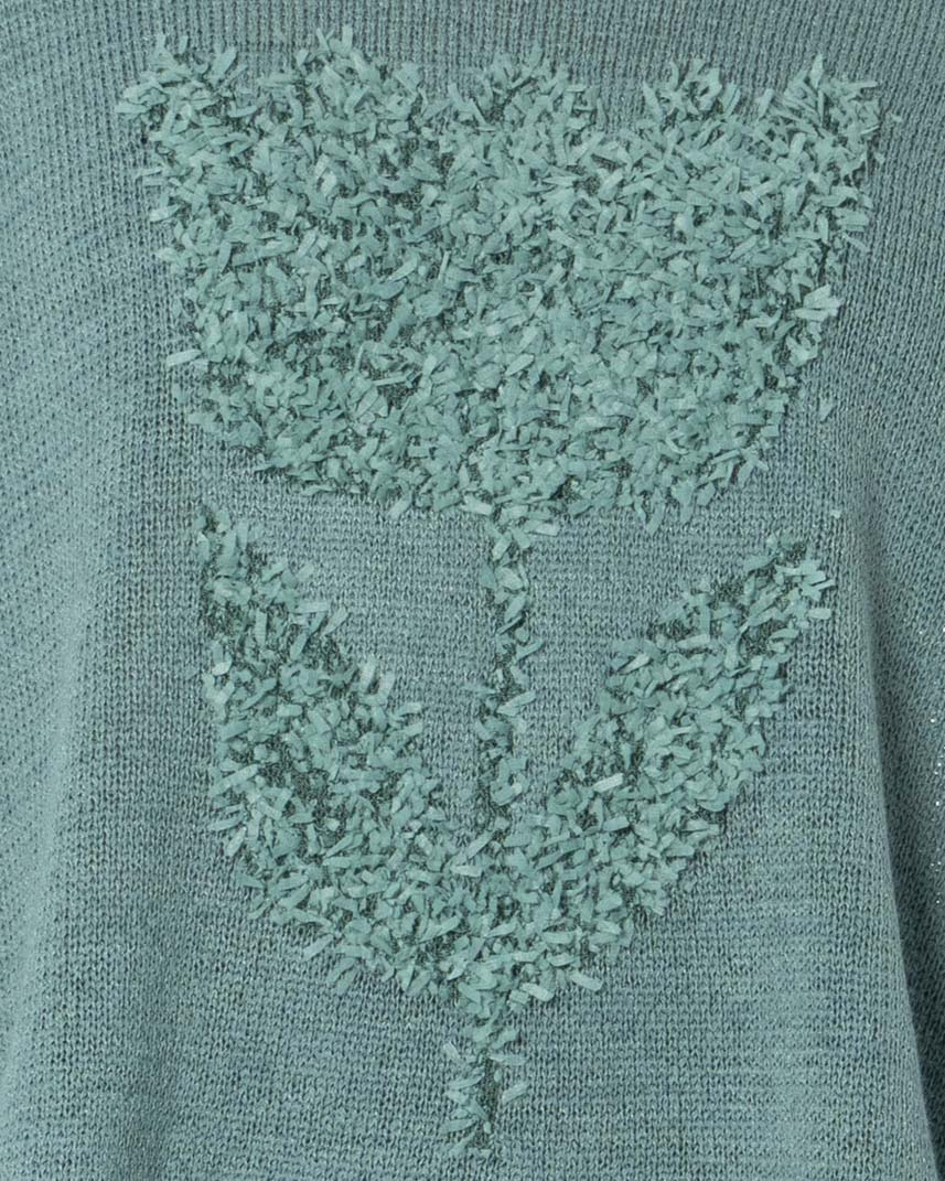 The tulip motif adds visual interest and depth to the design, while the lightweight knit structure keeps the overall look balanced and wearable. The loose cut allows the fabric to drape naturally and move with ease.
