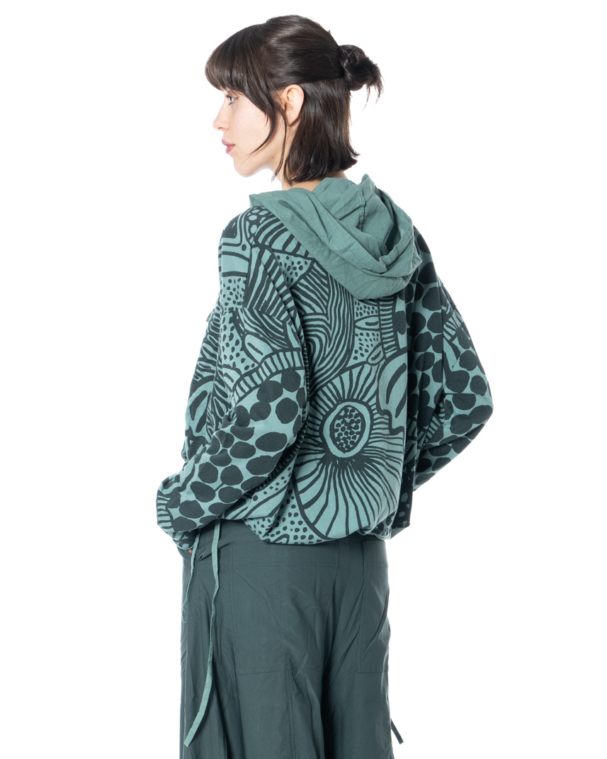 This pullover by the designer label RUNDHOLZ BLACK LABEL features a modern hoodie silhouette with a loose, oversized cut that provides effortless freedom of movement. A bold, abstract all-over print gives the piece a unique attitude, setting it apart from classic designs. A drawstring hood allows you to customize the fit, and long sleeves provide extra coverage on cooler days. The sweater is made from a soft, comfortable fabric with a lightly textured surface that adds tactile interest. Its relaxed fit makes it an ideal choice for casual, off-duty spring and summer looks. The exquisite craftsmanship and thoughtful design of RUNDHOLZ BLACK LABEL underscore the distinctive quality of this model. With this sweater, you'll add a versatile piece to your wardrobe—one that blends comfort with fashion-forward accents. Designer label RUNDHOLZ BLACK LABEL favors bold details and relaxed silhouettes.