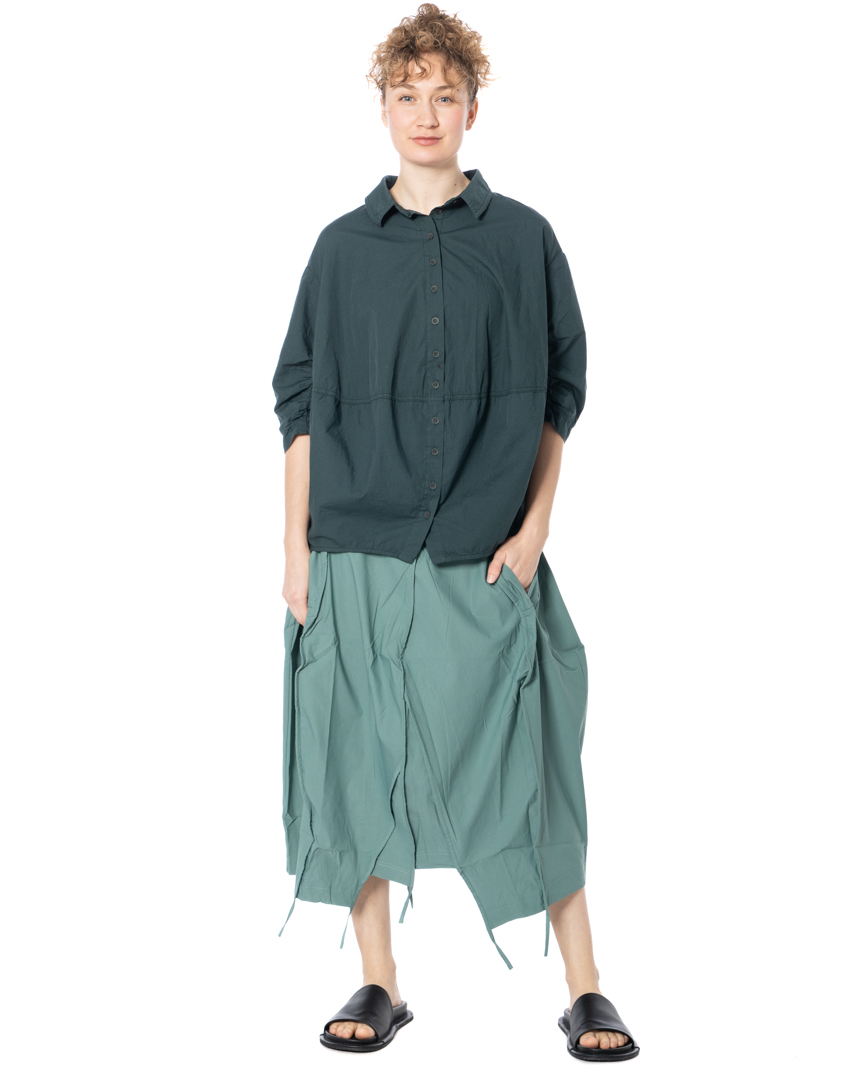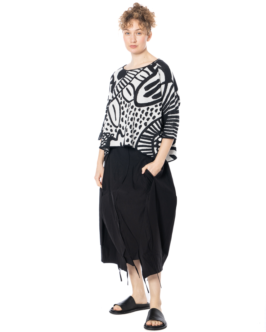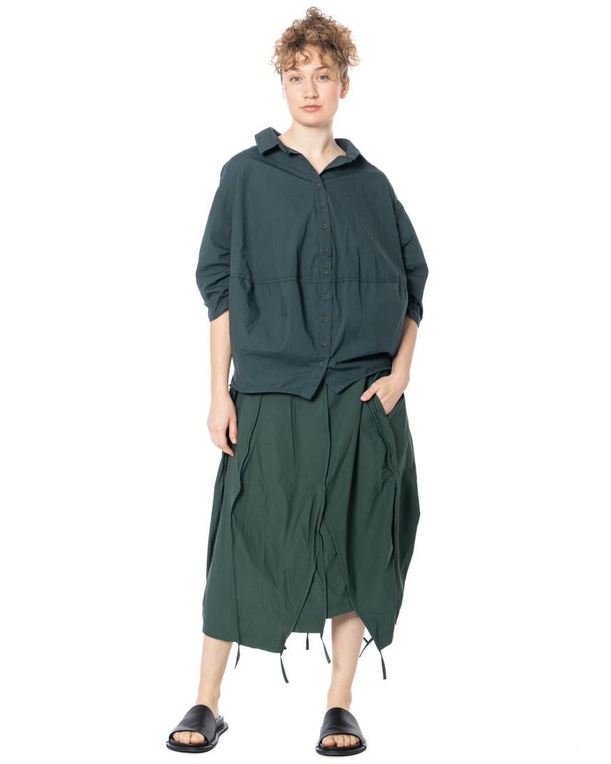 The asymmetrical skirt by designer label RUNDHOLZ BLACK LABEL features a striking, asymmetrical cut that gives the piece a distinctive shape. Deconstructed seams and textured stitching underscore its avant-garde attitude for a compelling, contemporary look. With a high waist and relaxed, fluid drape, this midi skirt skims the body without constricting. A minimalist aesthetic is emphasized by clean lines and the deliberate omission of superfluous details. Convenient side pockets provide added utility, while the modern silhouette offers versatile styling options. RUNDHOLZ BLACK LABEL embraces a comfortable fit in this model-perfect for warm spring and summer days, yet effortless enough for year-round wear.