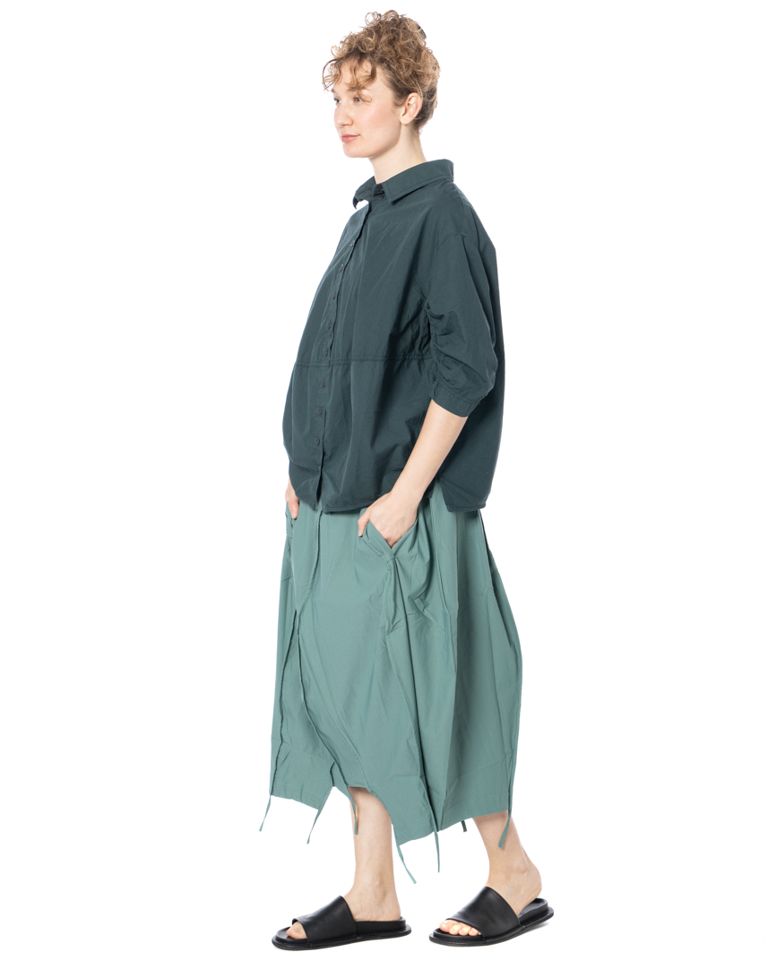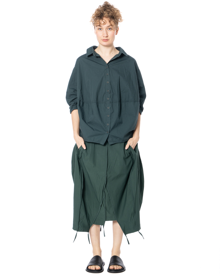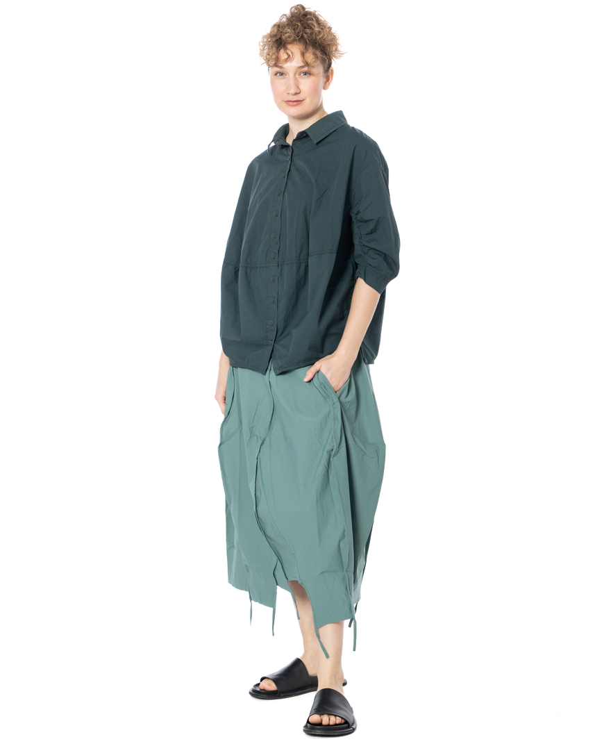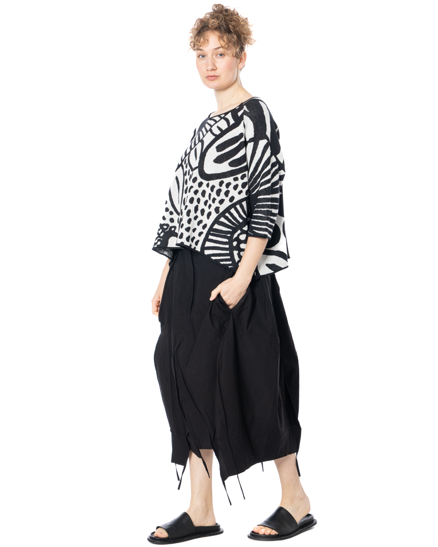 The asymmetrical skirt by designer label RUNDHOLZ BLACK LABEL features a striking, asymmetrical cut that gives the piece a distinctive shape. Deconstructed seams and textured stitching underscore its avant-garde attitude for a compelling, contemporary look. With a high waist and relaxed, fluid drape, this midi skirt skims the body without constricting. A minimalist aesthetic is emphasized by clean lines and the deliberate omission of superfluous details. Convenient side pockets provide added utility, while the modern silhouette offers versatile styling options. RUNDHOLZ BLACK LABEL embraces a comfortable fit in this model-perfect for warm spring and summer days, yet effortless enough for year-round wear.