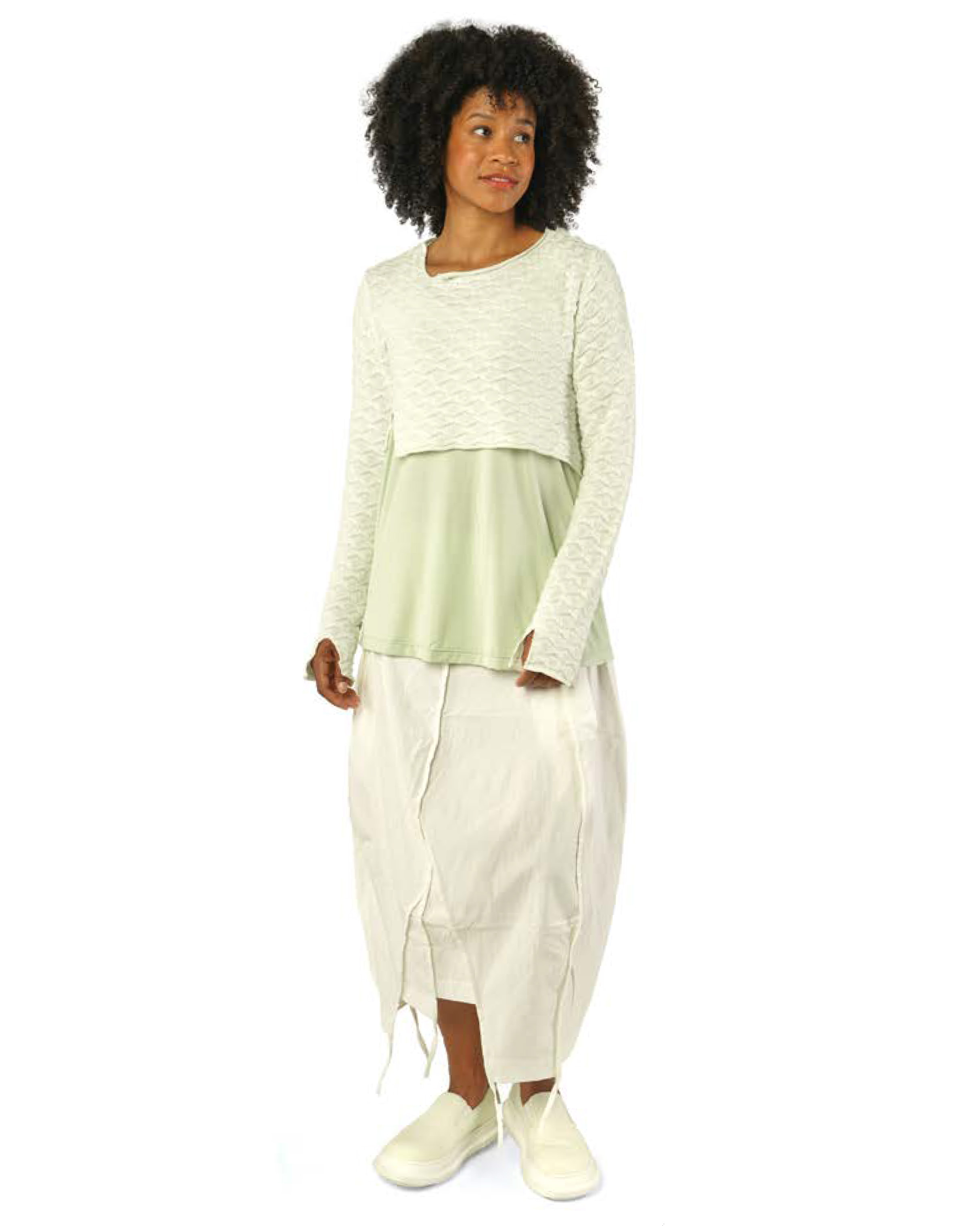 - Relaxed, fluid drape