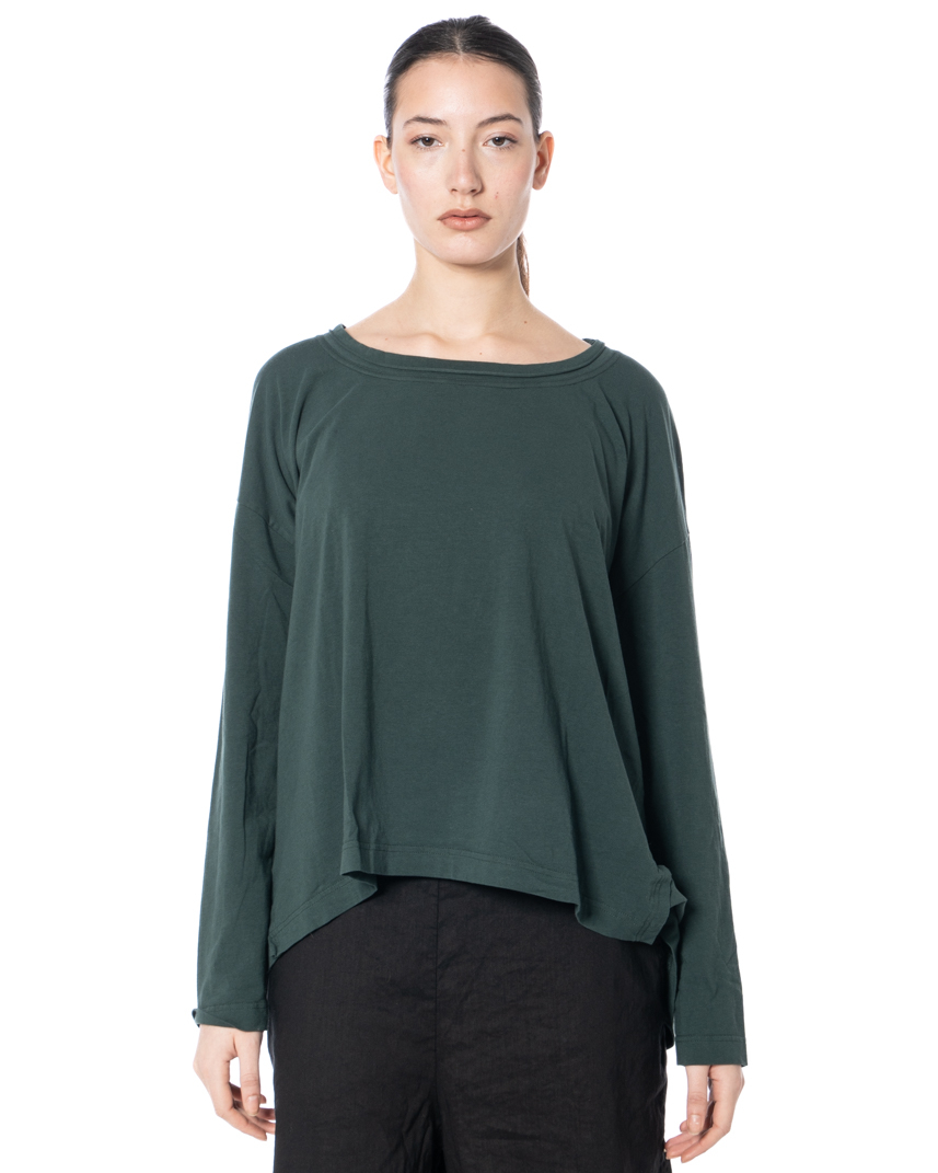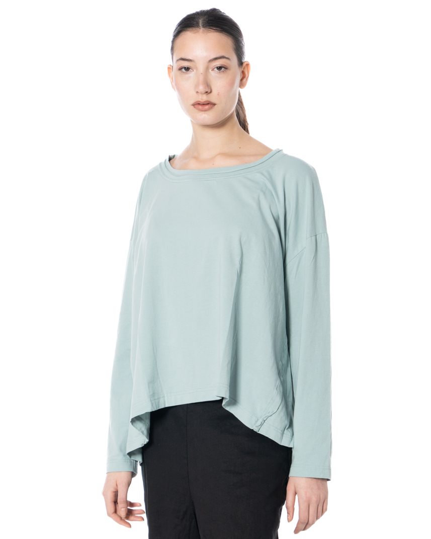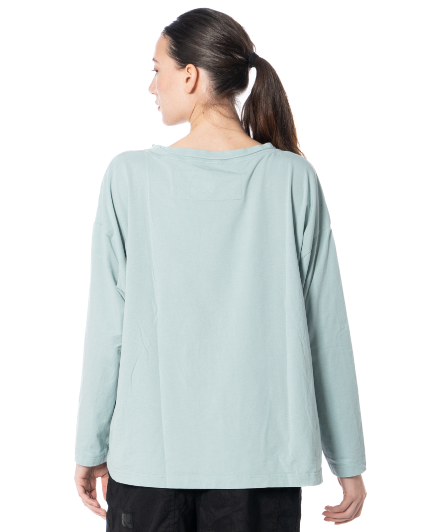 The RUNDHOLZ BLACK LABEL long-sleeved shirt is a versatile addition to your wardrobe for the warmer months. Its refined minimalism and thoughtful details make it a chic addition to any wardrobe.