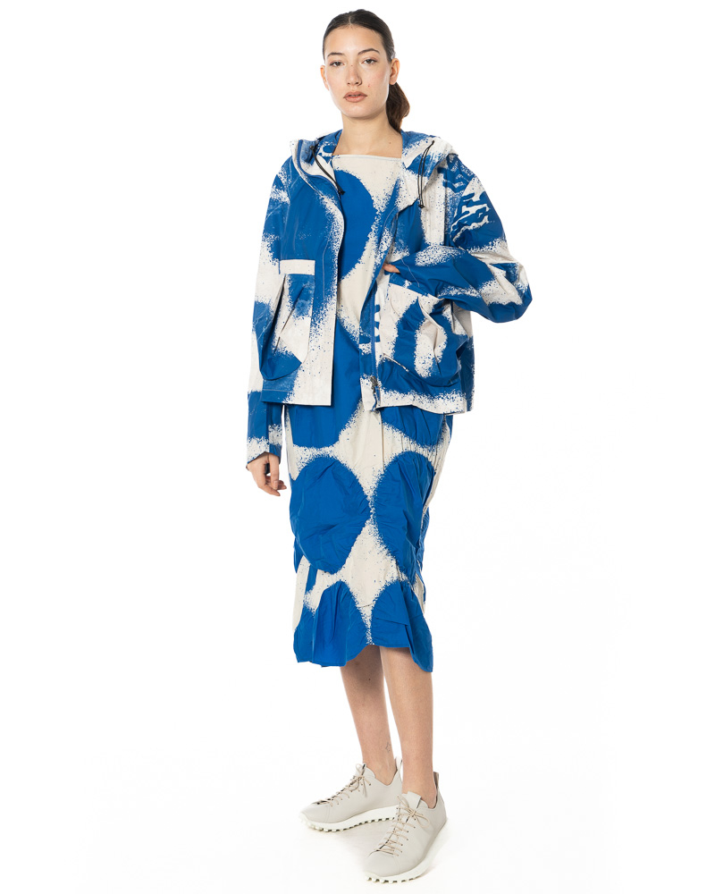 Big circles, big impact! The XXL dots on this iconic RUNDHOLZ cotton poplin dress appear like artistic bursts of colour, their spray-paint–inspired design creating a rhythmic visual play that instantly elevates the look into the realm of contemporary avant-garde fashion. The slim, cleanly contoured silhouette flatters the figure in a modern, effortless way.