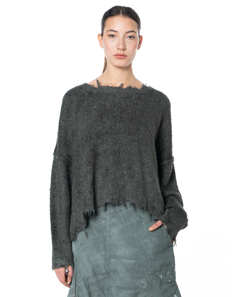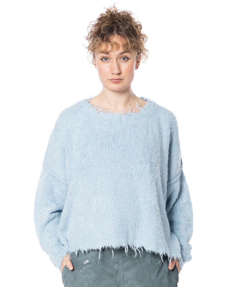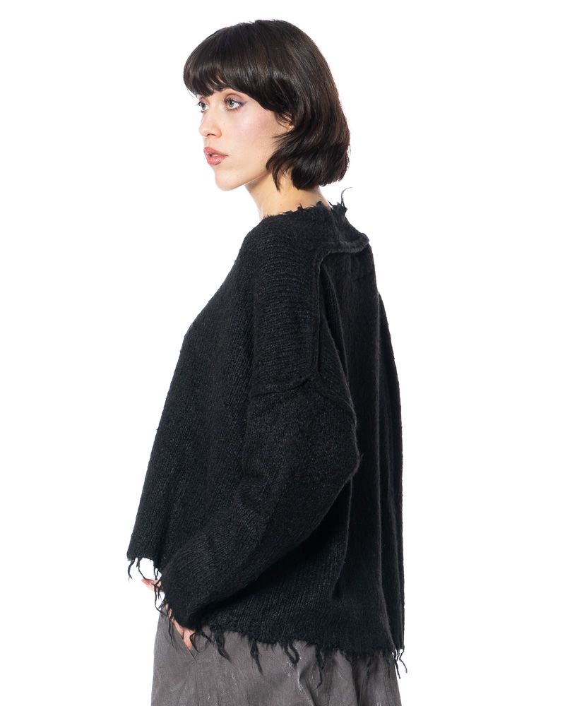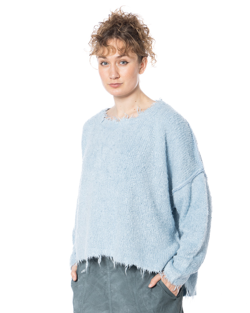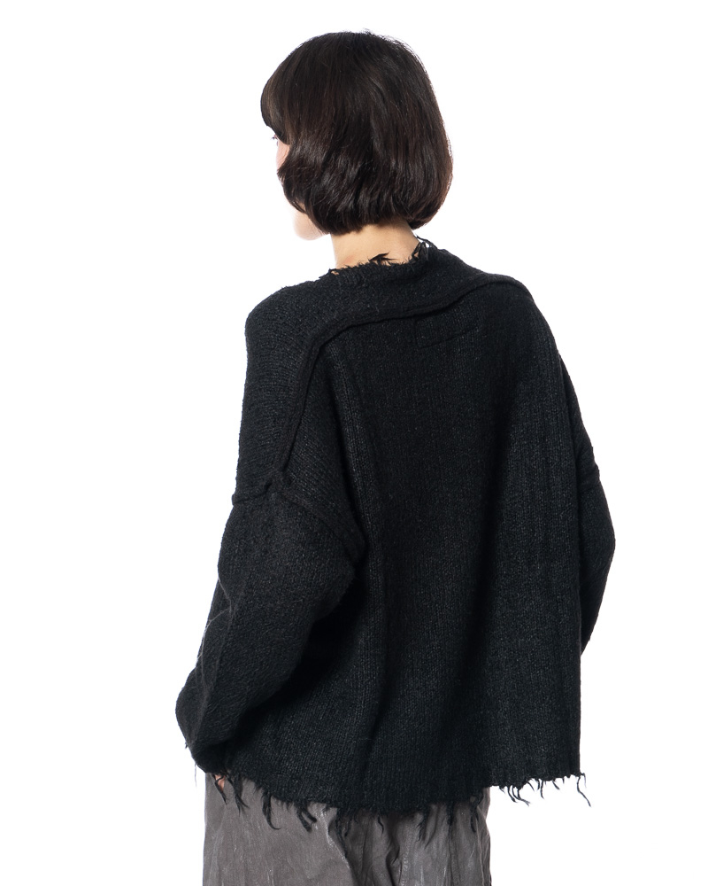 RUNDHOLZ DIP creates refined, timeless fashion rooted in exceptional craftsmanship and quality. Luxurious silk knit meets deliberately unfinished details: fringes at the hem, sleeves and round neckline disrupt classic knit conventions and translate artisanal expertise into a modern attitude. This is where the true DNA of RUNDHOLZ DIP reveals itself — timeless in intention, radical in expression.