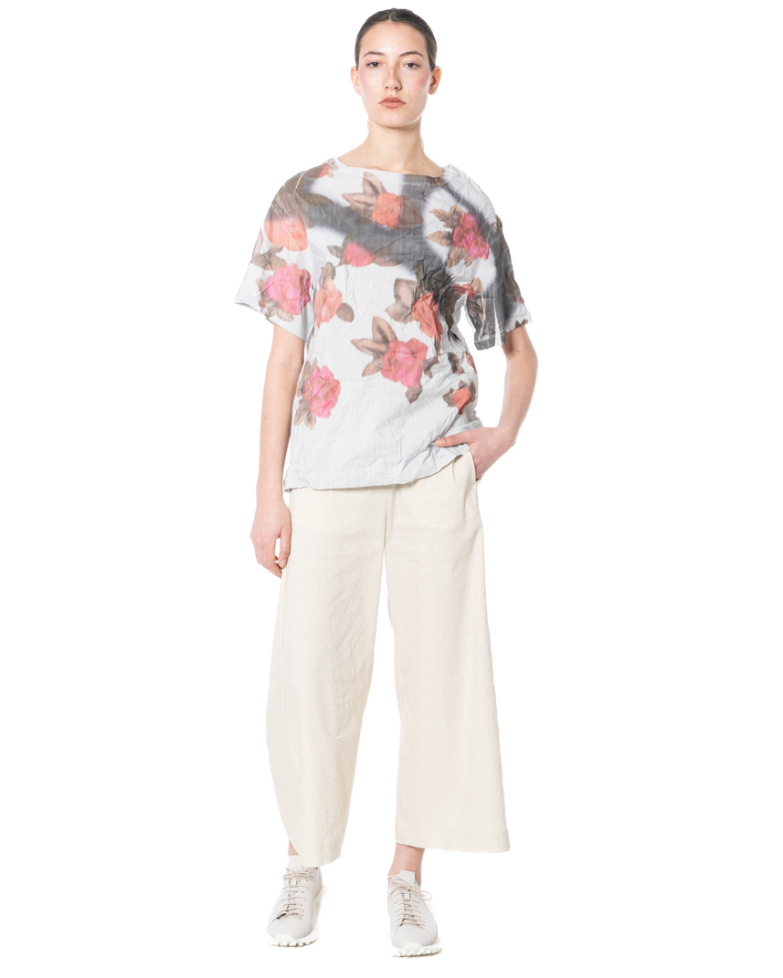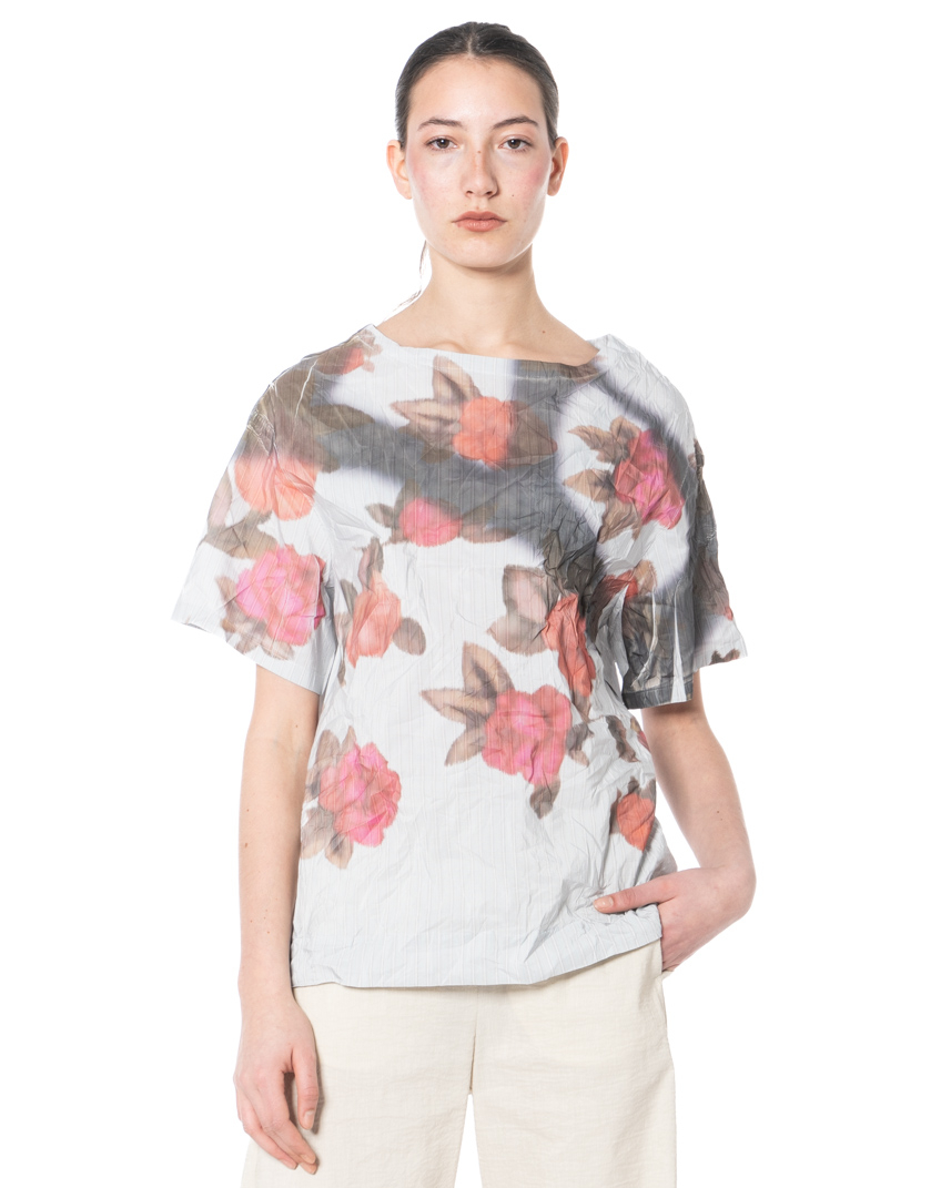 The second version is designed is a floral print that adds a soft, artistic note to the purist cut. The floral motifs appear like a gentle burst of color against the clean silhouette.