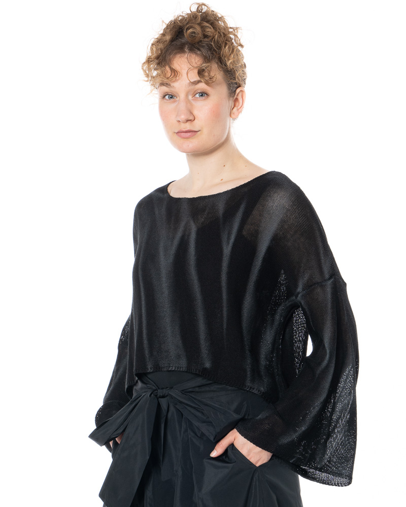 Cropped Knit Sweater with Unique Spray Effect by LA HAINE INSIDE US The LA HAINE INSIDE US, short knit sweater with gray play of colors impresses wit...